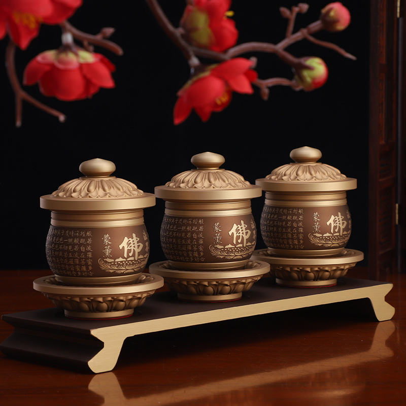 佛具用品大全台湾铜香炉家用室内供佛供具套装佛前圣水杯供果盘灯