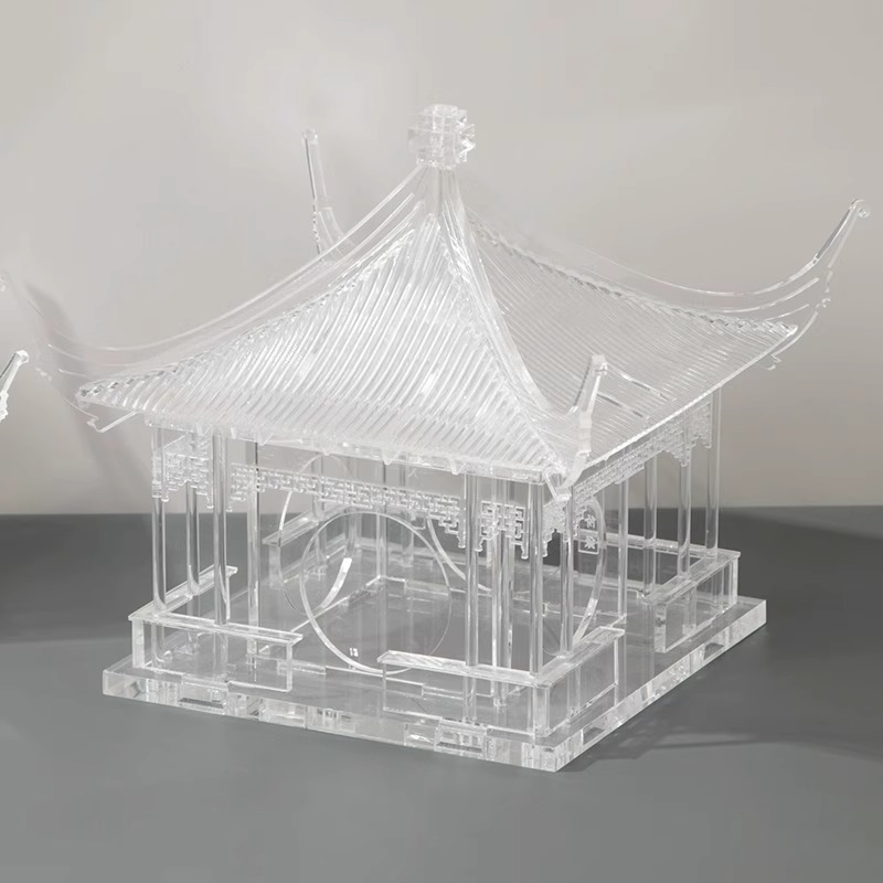 新中式中国风古建筑透明亚克力四角凉亭模型房子样板间书柜装饰品