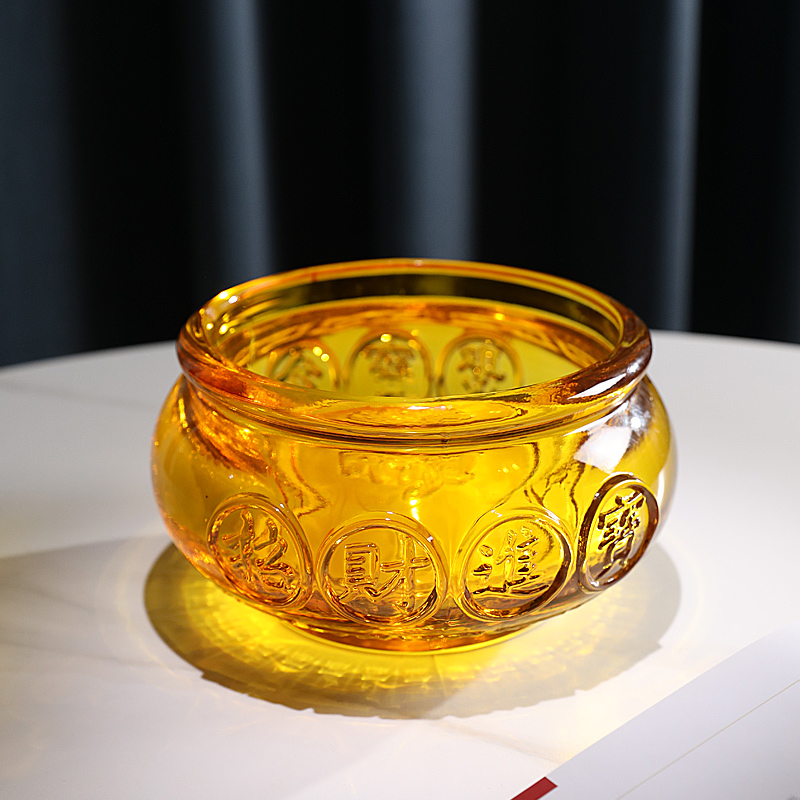 琉璃聚宝盆摆件招财聚财黄水晶办公室书房装饰新中式开业礼品赠品