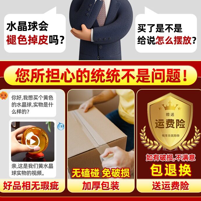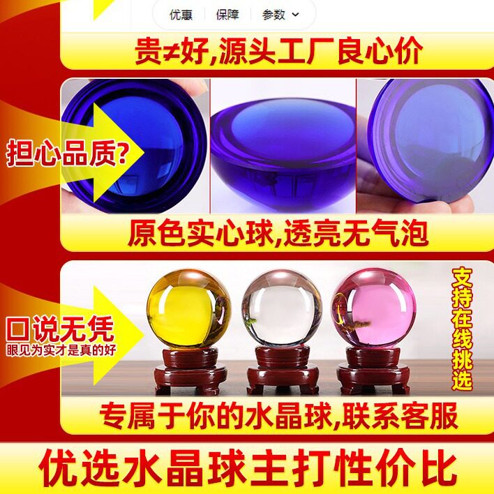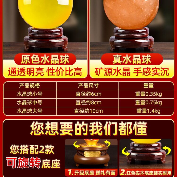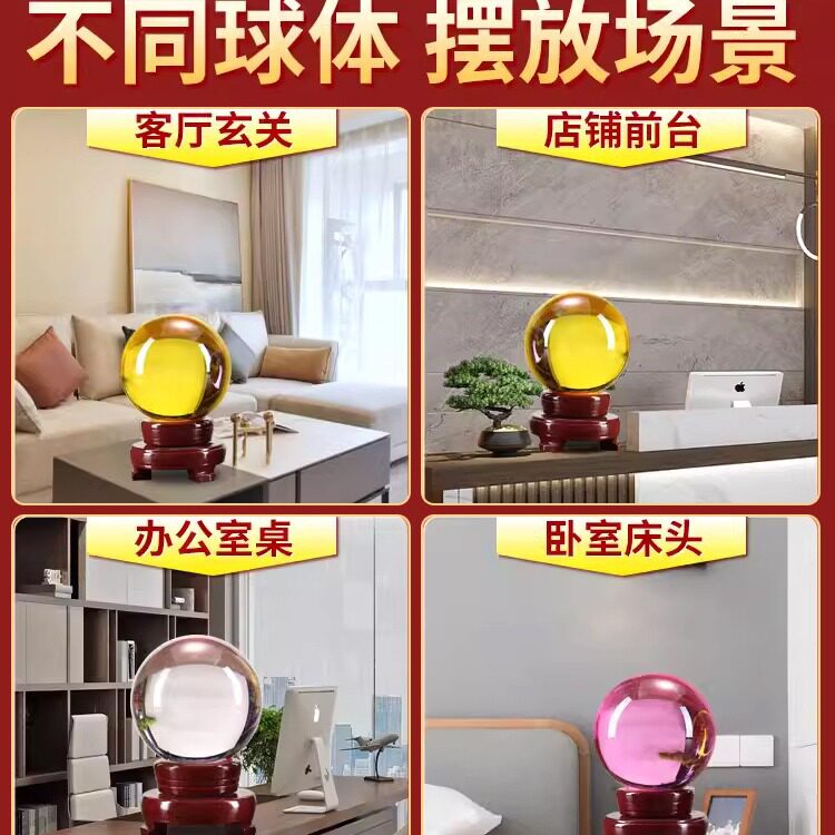 黄色水晶球摆件白紫红透明圆球玻璃家居装饰品客厅小号开业摆件