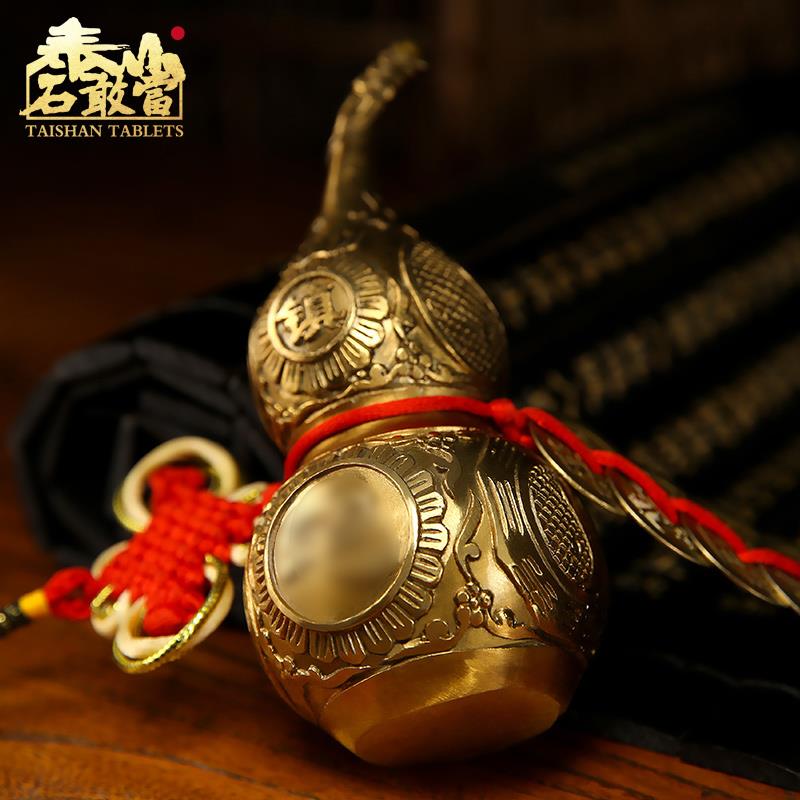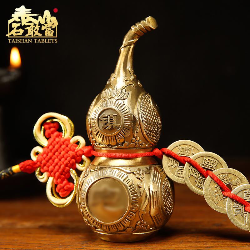 铜葫芦摆件纯铜五帝钱挂件大小号家居客厅玄关装饰礼品压门槛摆件
