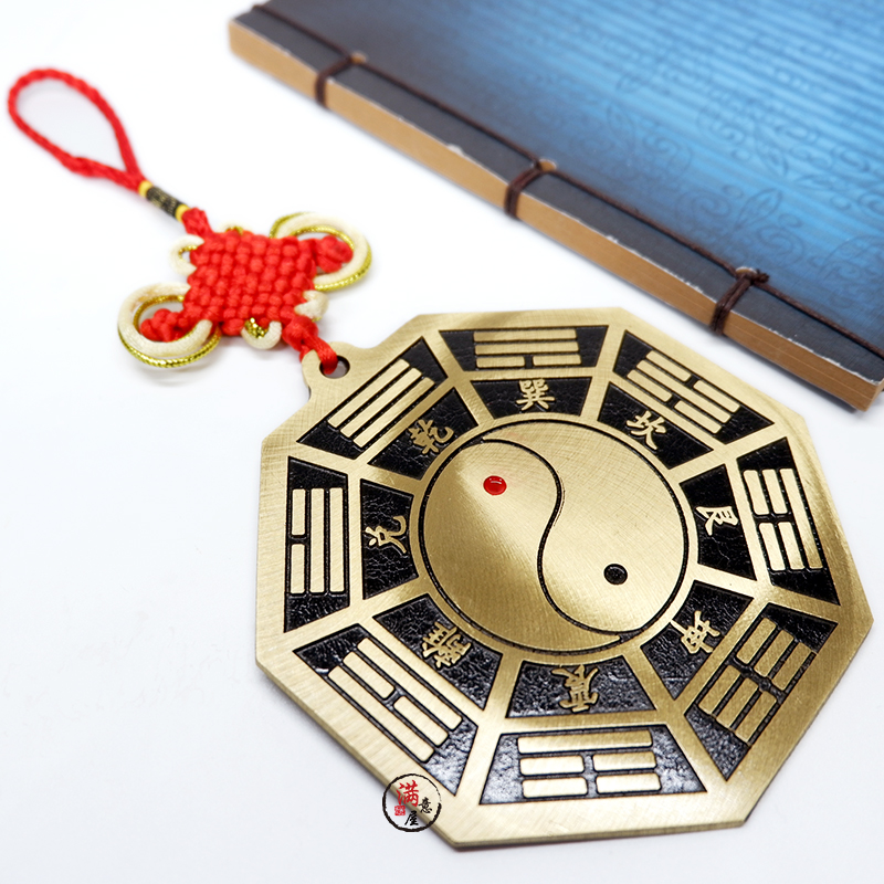 五福八卦福解生肖之间冲害黄铜平面八卦镜家用店铺大门口挂件