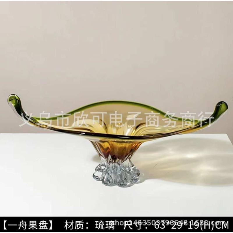 装船形软样板间琉璃收纳果篓轻餐桌饭厅客厅售楼处奢玻璃果盘摆件