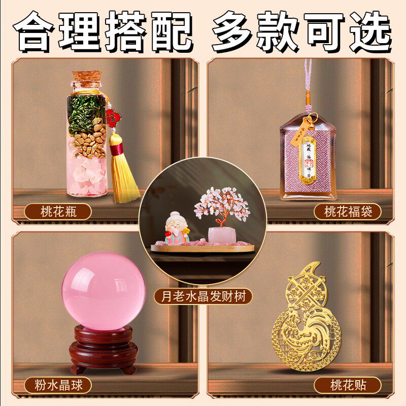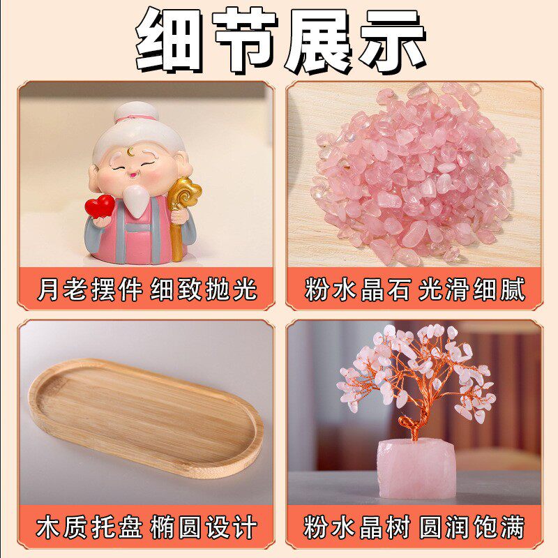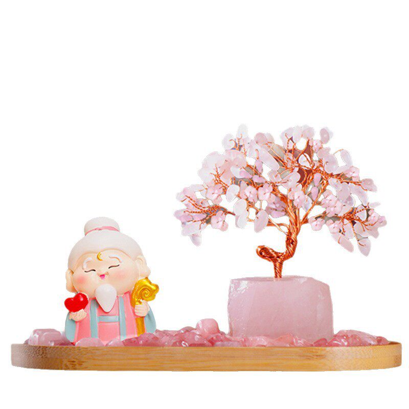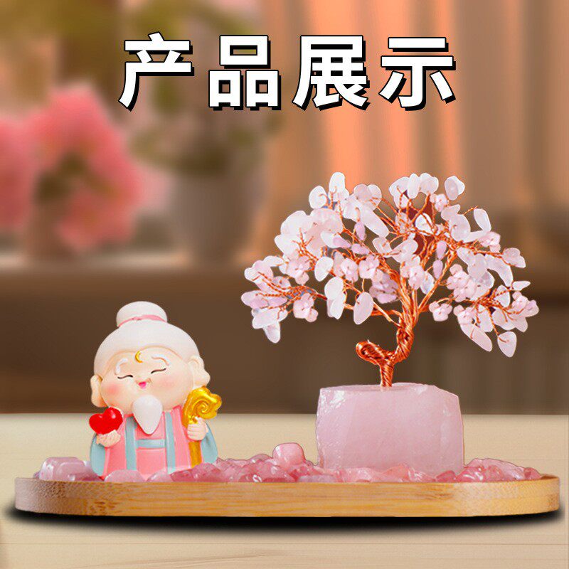 月老摆件粉水晶发财树办公室工位玄关装饰品桃花创意摆件现货代发