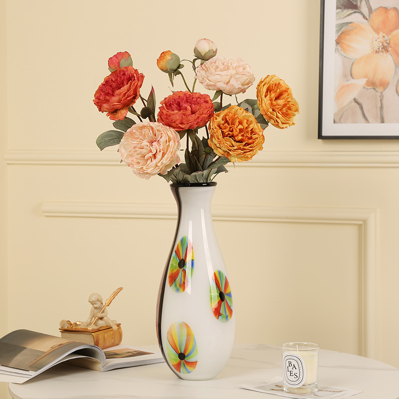 大师轻奢艺术玻璃花瓶摆件七色彩虹客厅样板房玄关插花花器装饰品