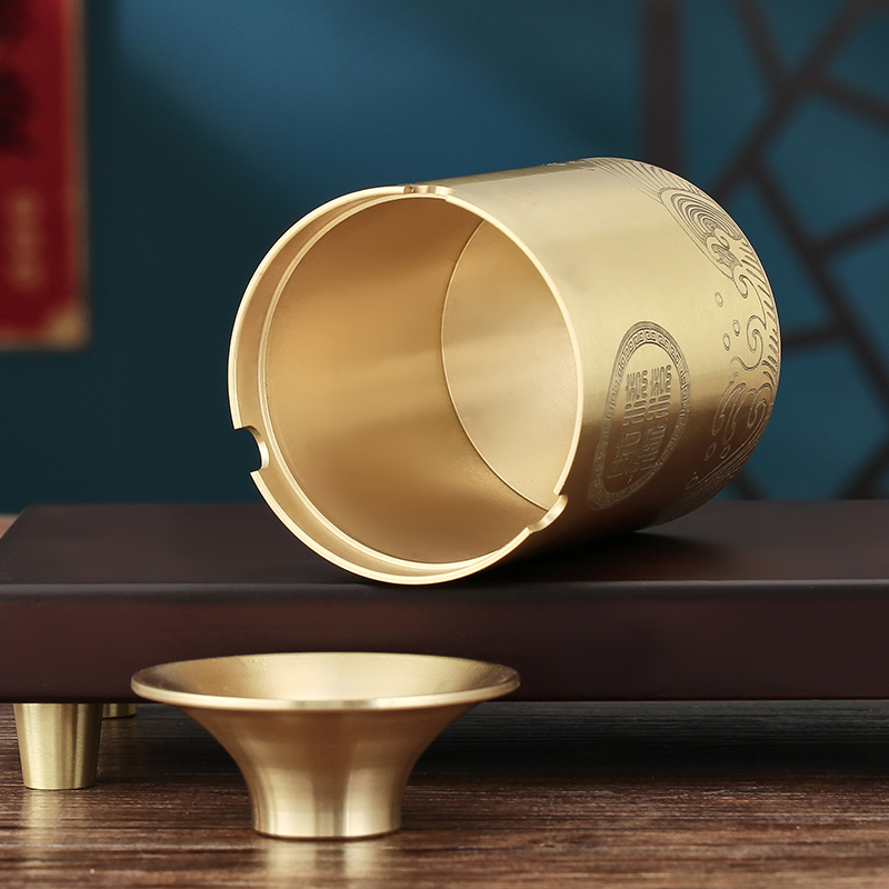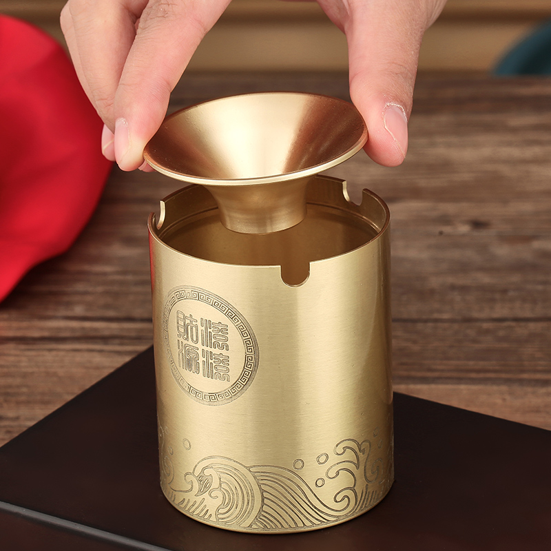 纯黄铜烟灰缸高级感q大气创意个性防飞灰家用客厅办公室轻奢