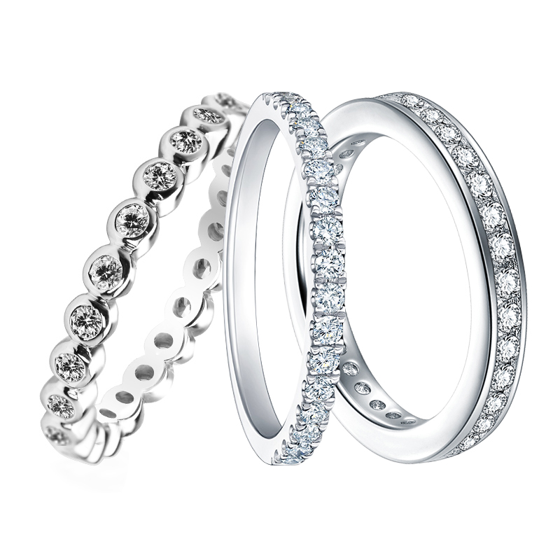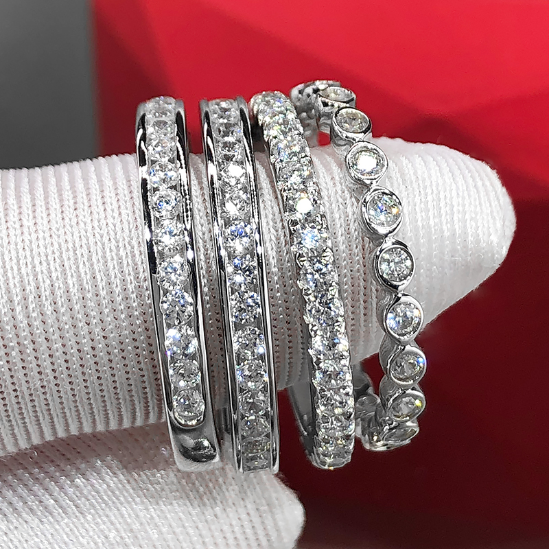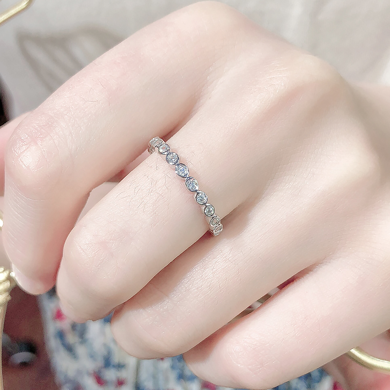 超闪D色莫桑石排钻戒女银配戒细V戒圈排戒镶钻叠戴组合关节戒指环
