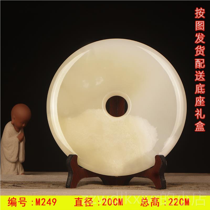新款平安扣件天然玉石意家居摆摆中式设客厅创办公桌玉盘玄关工艺