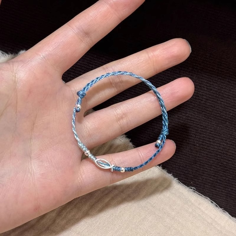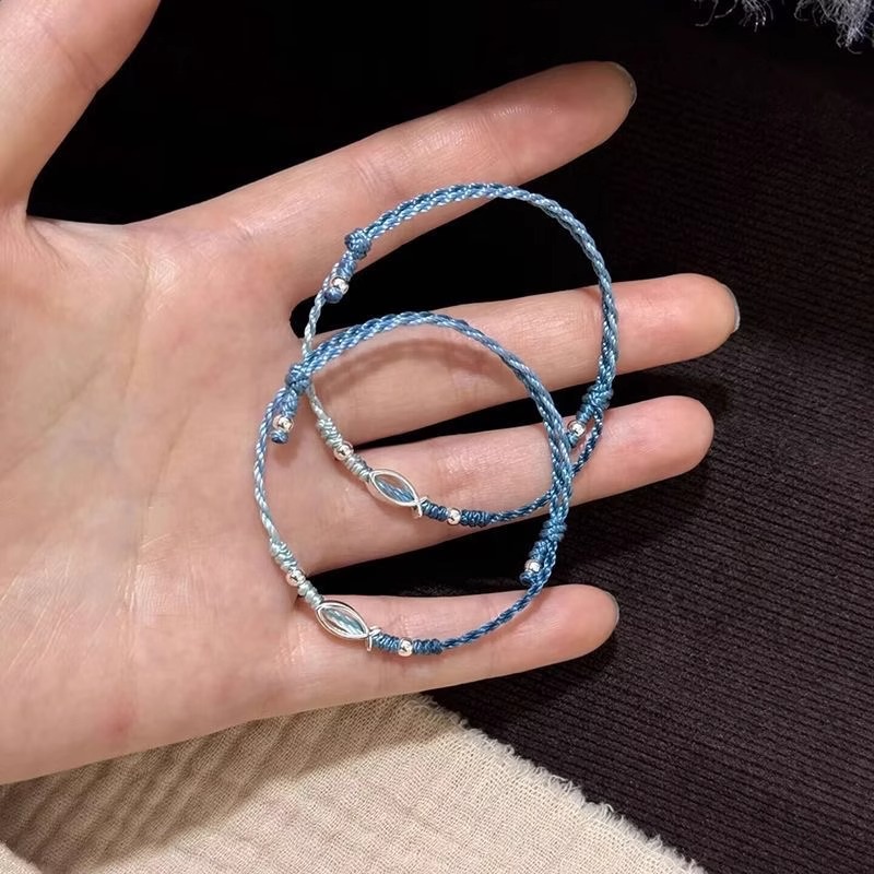 蓝色可爱深海小鱼编织情侣手链小众轻奢百搭可调节闺蜜礼物锦鲤