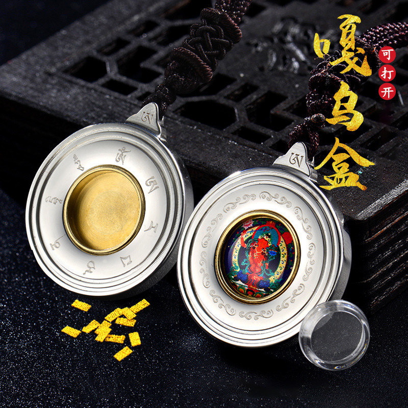 钛钢吊坠旅游纪念品楞严咒文殊绿度母挂件男女项链嘎乌盒饰品