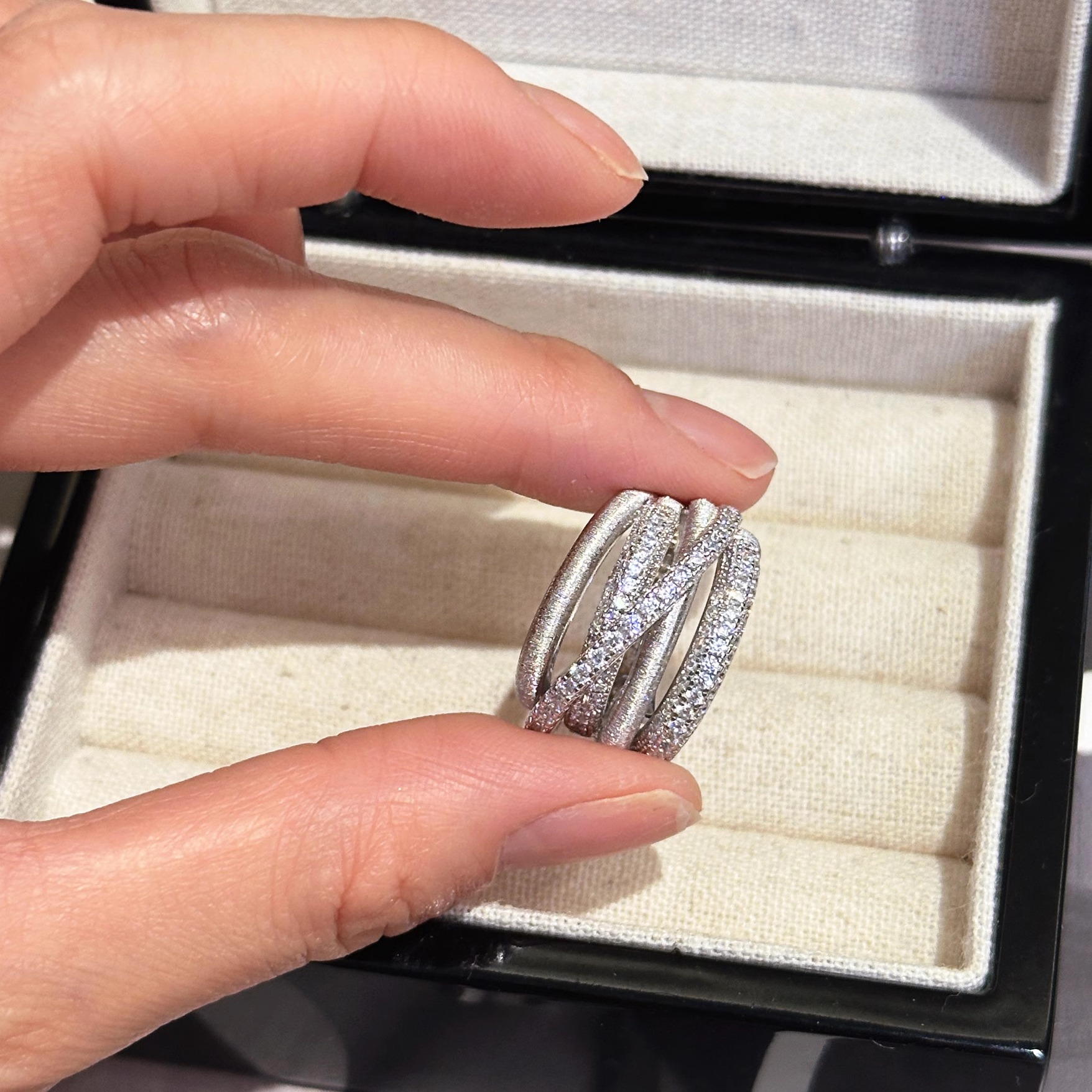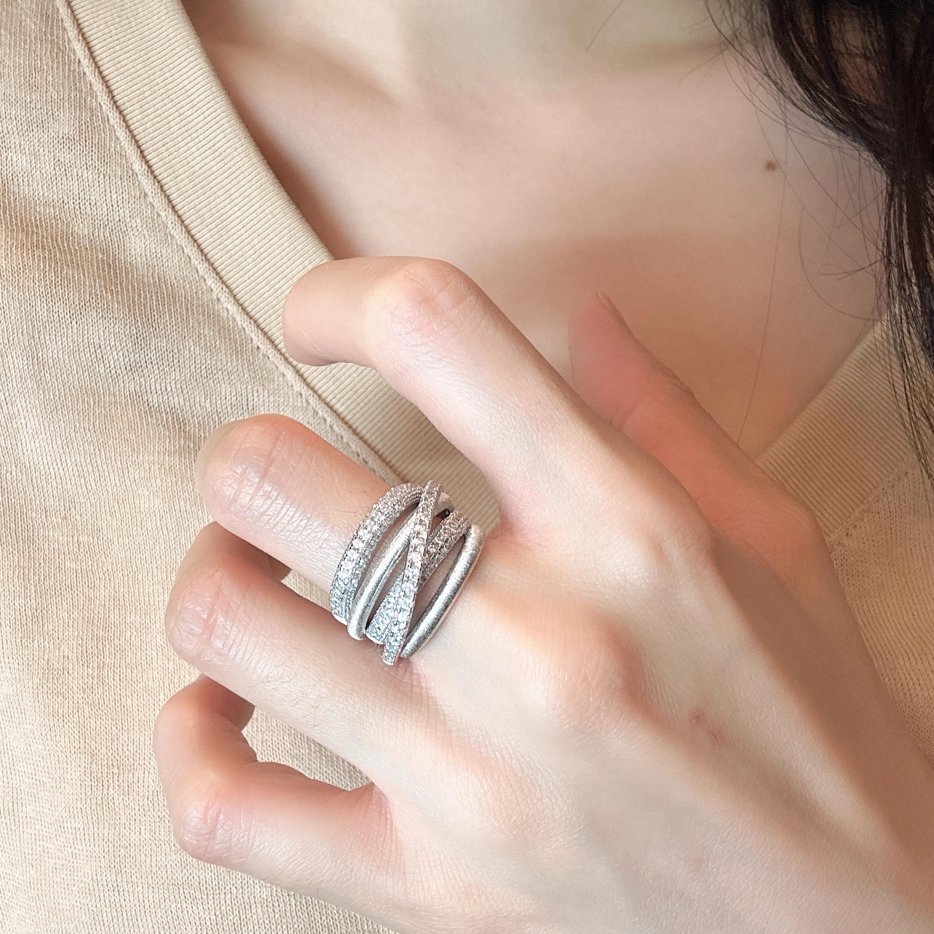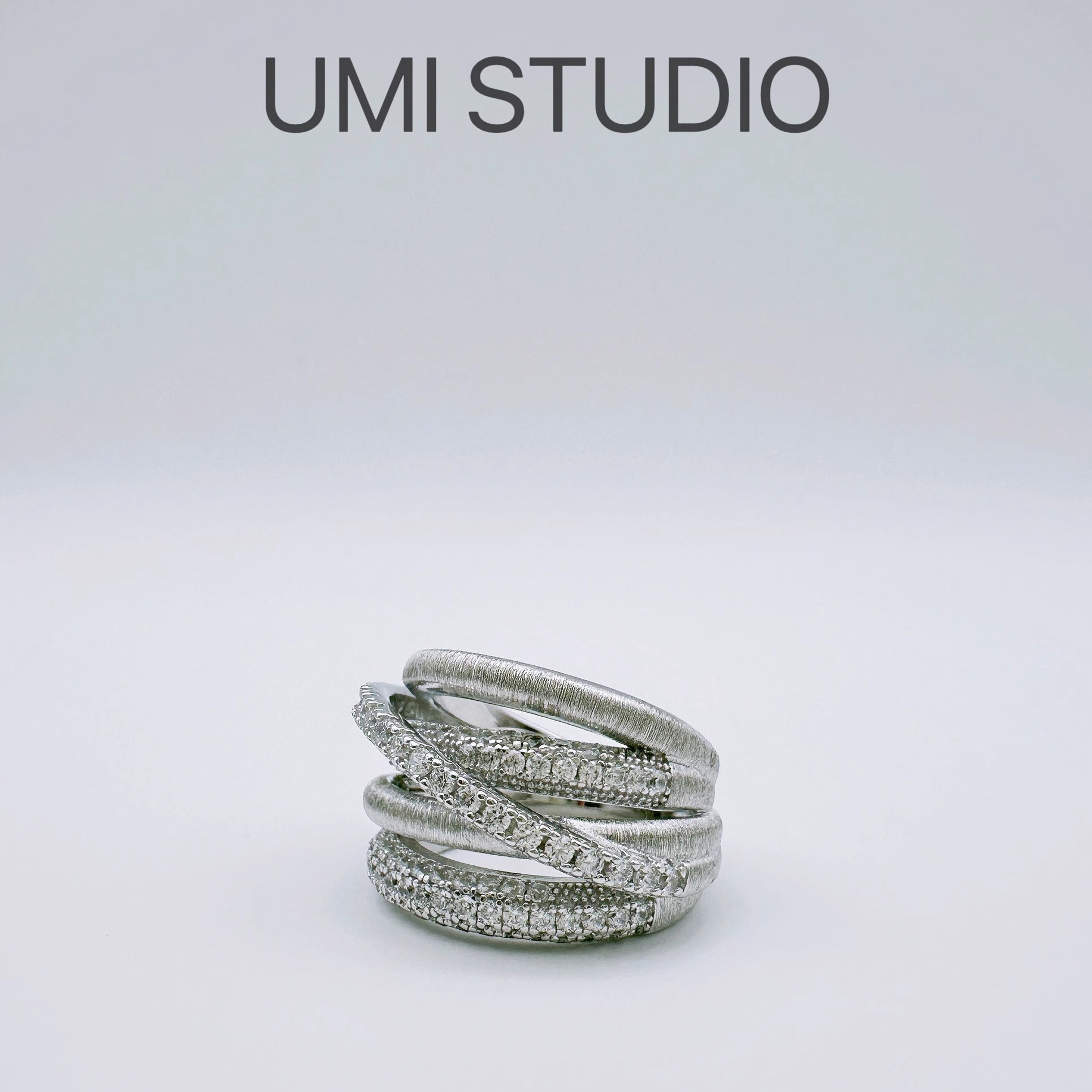 UMI家·轻珠宝/S925银镀k金·鎏金岁月多层拉丝镶钻女戒小众设计