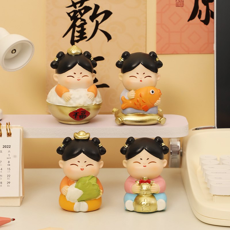 国潮唐仕女小摆件桌面招财可爱少女心家居装饰创V意中式生日礼物