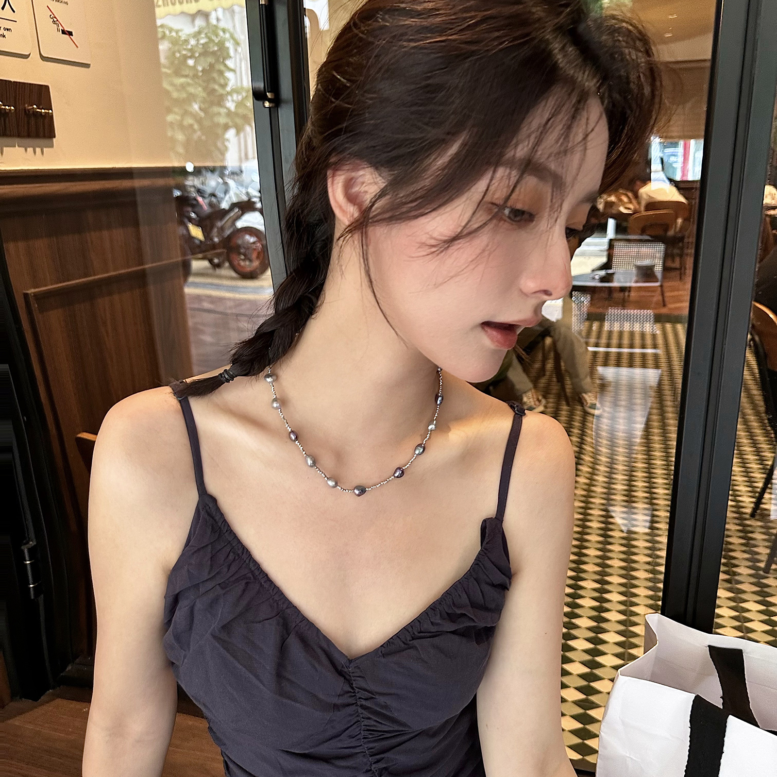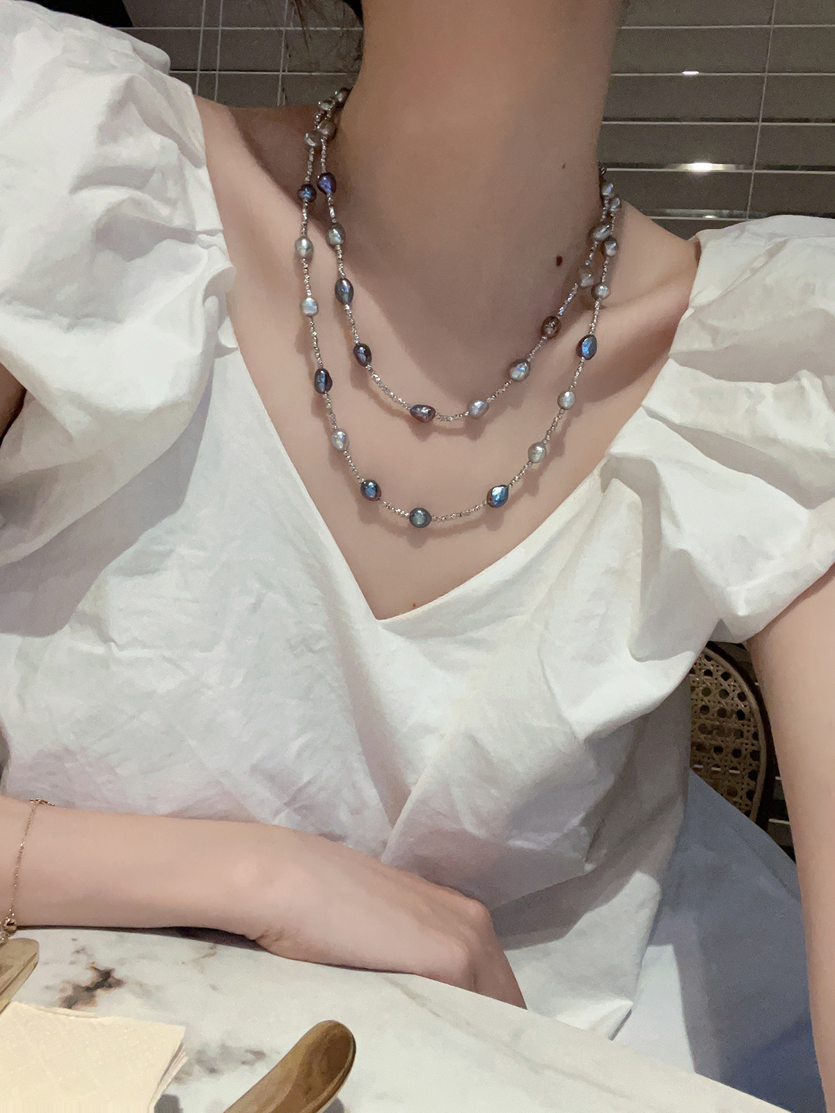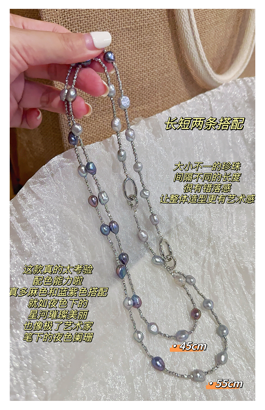 原创灰蓝色系串珠间珠天然淡水珍珠项链满天星设计师款个性小众女