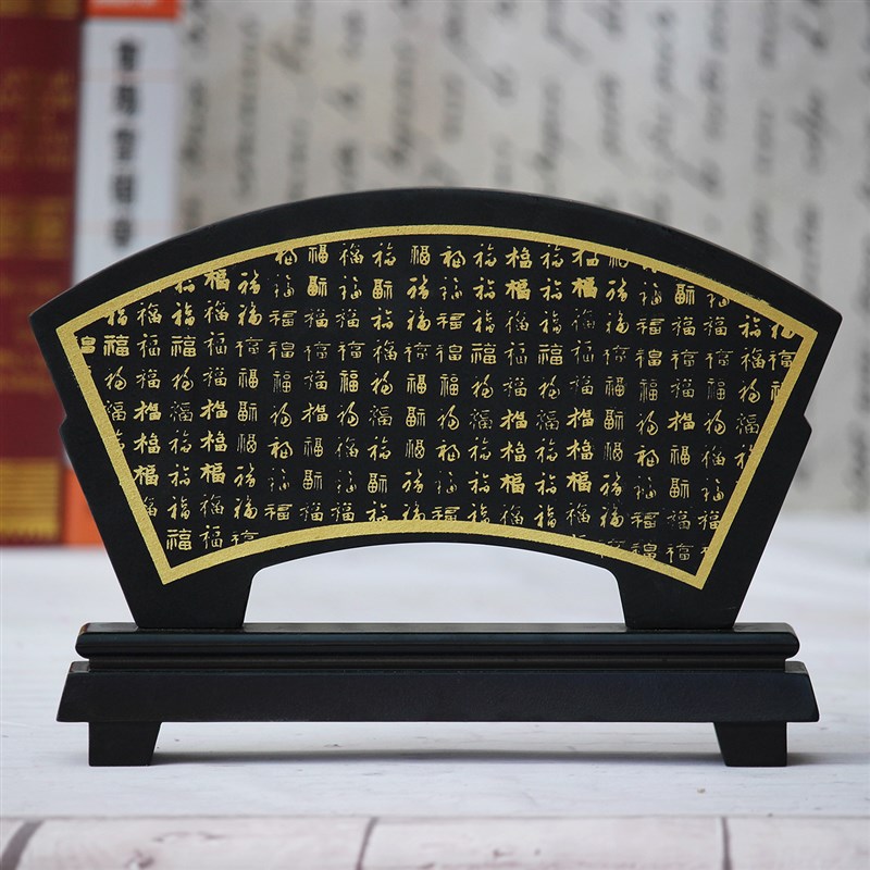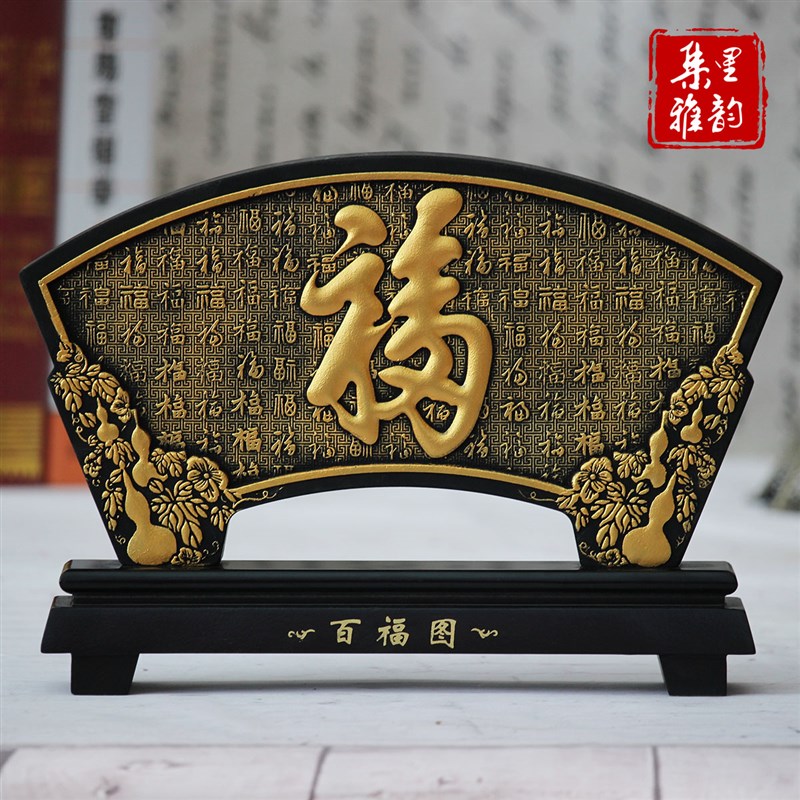 活性炭雕工艺品扇形百福图福字家居装饰品送礼品电视柜古董架摆件