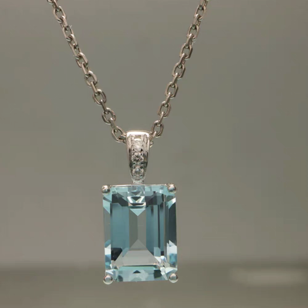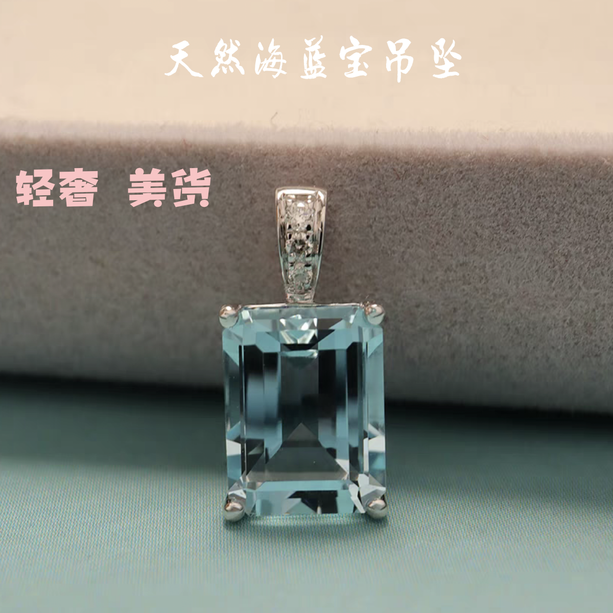 海蓝宝吊坠925银镀白金托帕石轻奢小红书网红彩宝挂件项链戒面