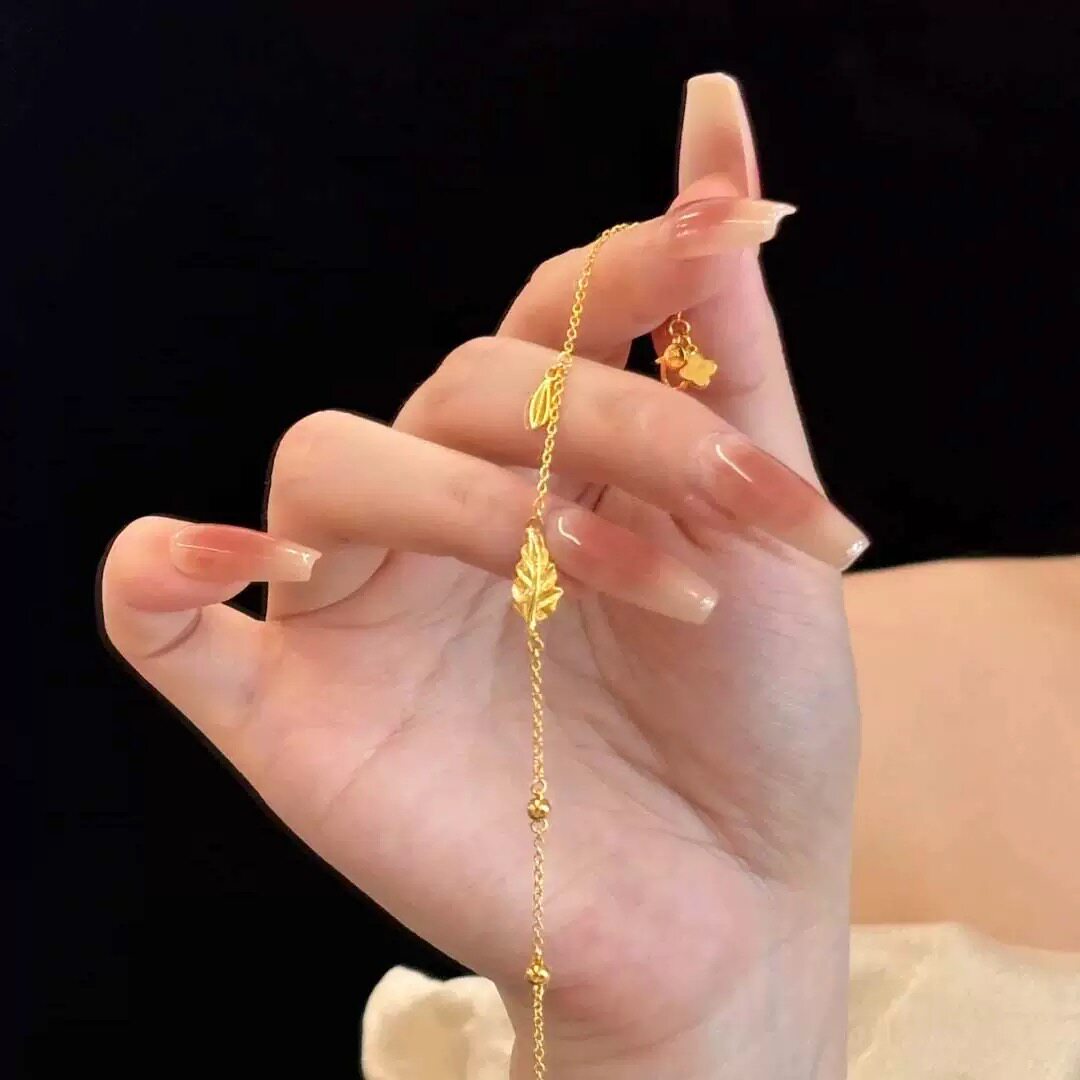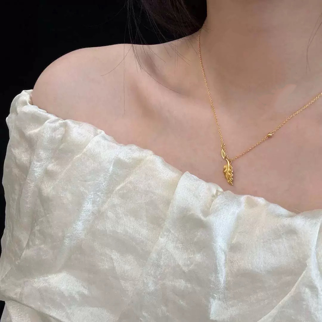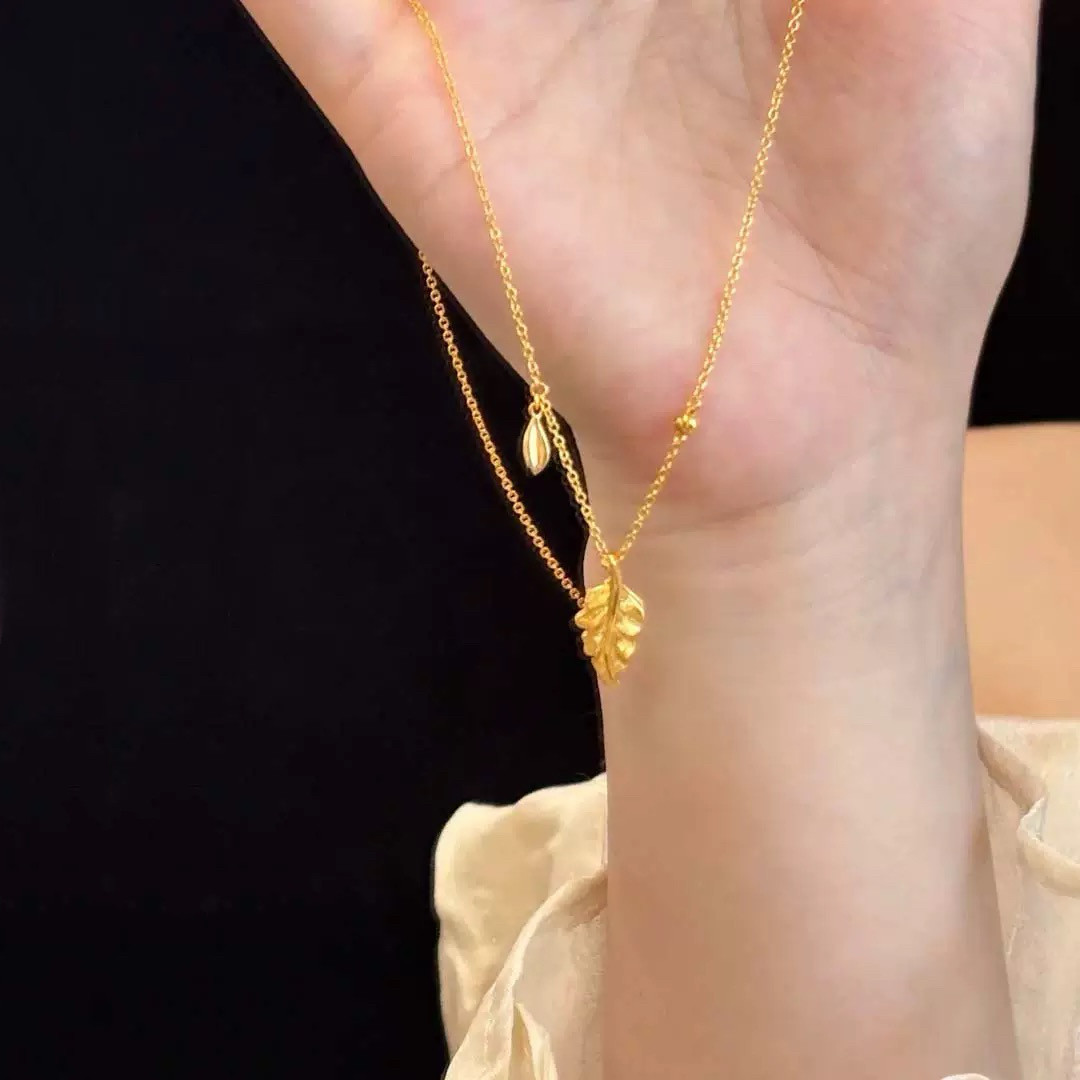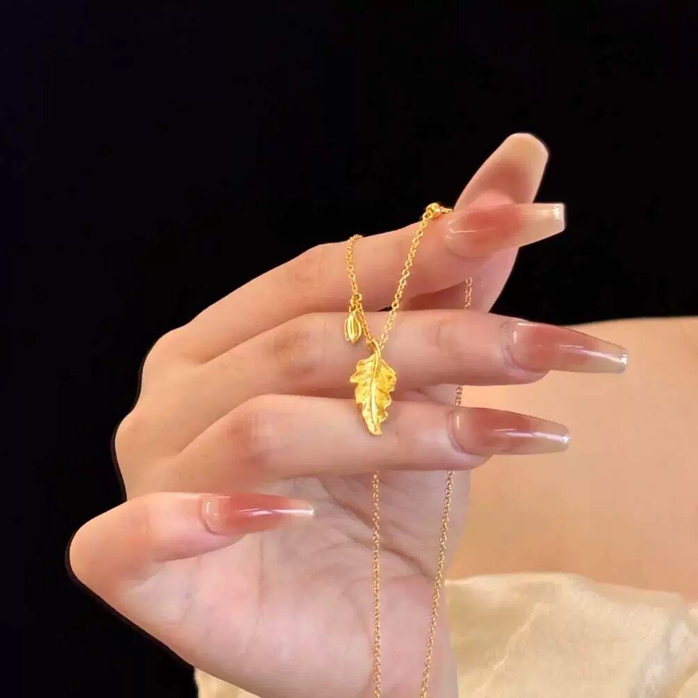 金枝玉叶黄金色项链仿真沙金叶子锁骨链轻奢高级感婚嫁订婚结婚女