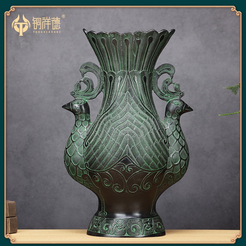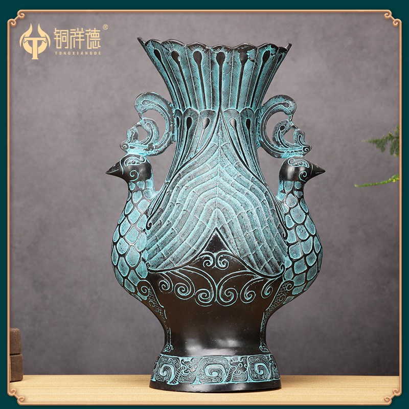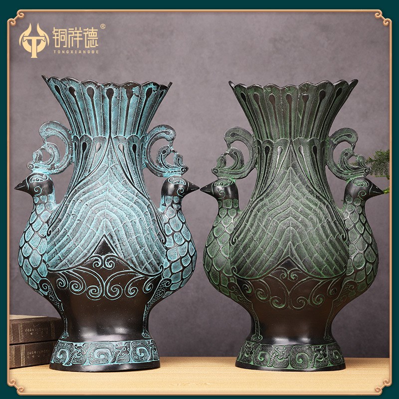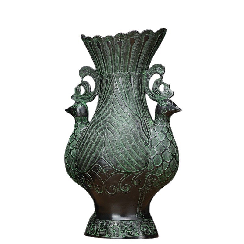 青铜器古摆件青铜凤尊酒樽吉祥鸟尊古玩家居装饰工艺品铜花瓶
