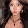 zoozmomo时髦红色夸张项链耳环套装女奢华锆石宴会礼服锁骨链