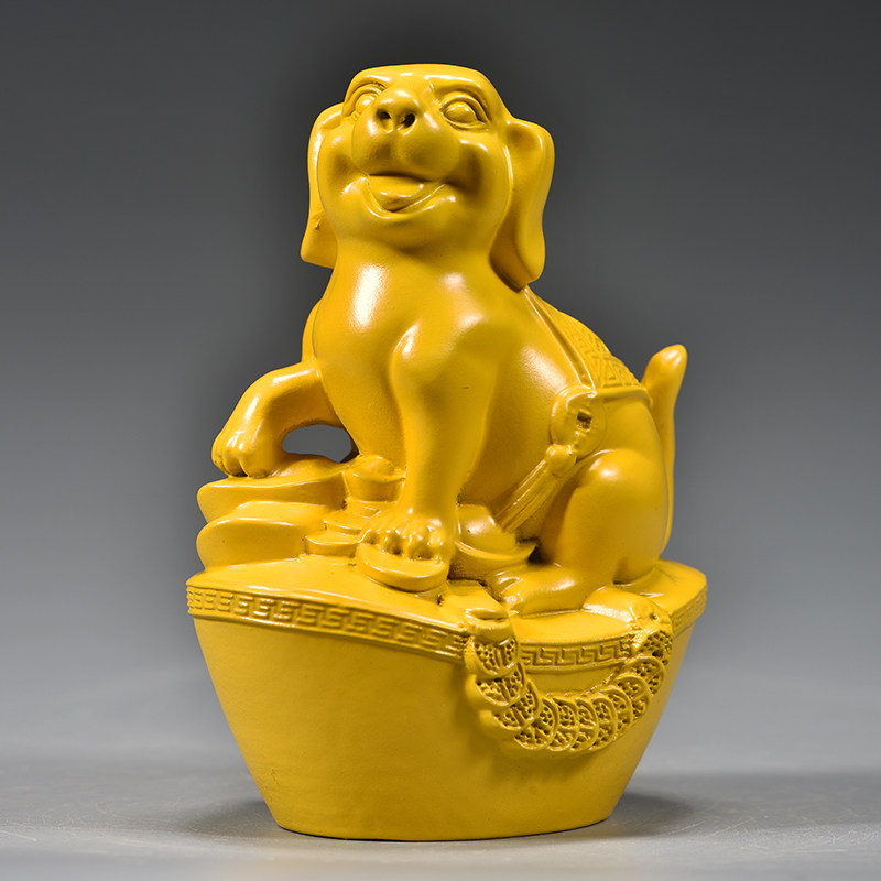 黄色木雕狗摆件十二生肖狗摆设家居补角吉祥物办公装饰红木工艺品