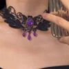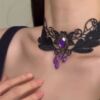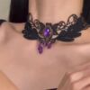 复古宫廷风 暗黑哥特蕾丝紫色锆石流苏项链锁骨链choker项圈配饰