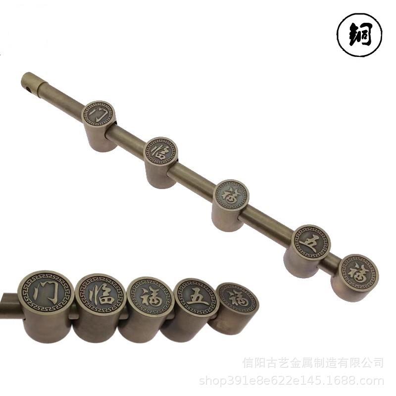 大门铜插销门栓中式仿古门栓锁五福临门门闩实木大门明插销防盗栓