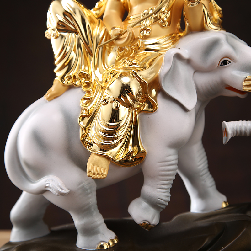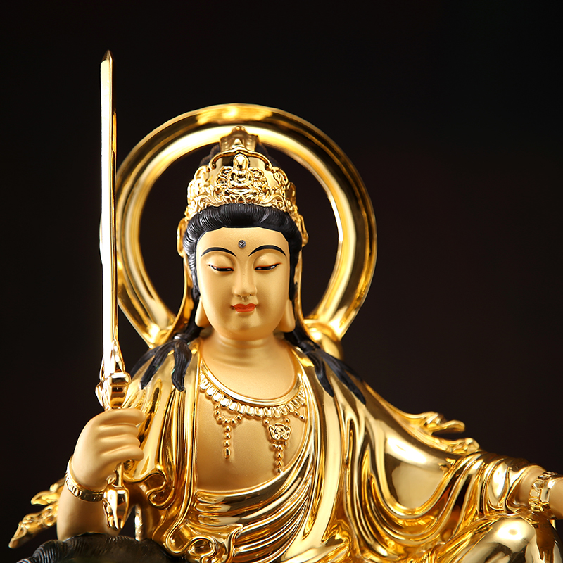 圆通佛具铜雕鎏金文殊普贤佛像供奉普贤菩萨文殊菩萨华严三圣摆件