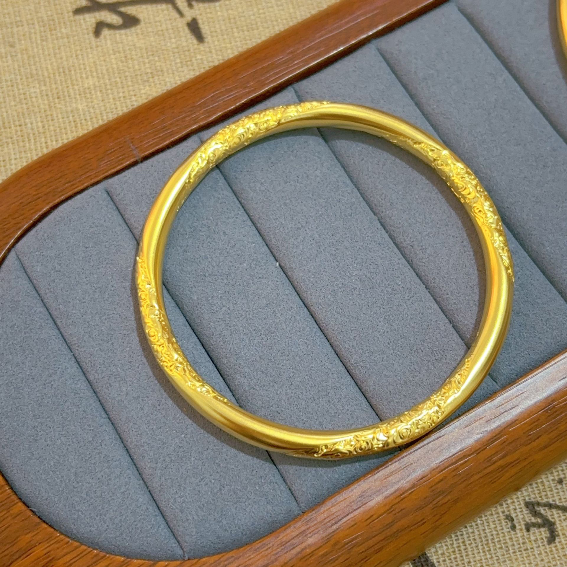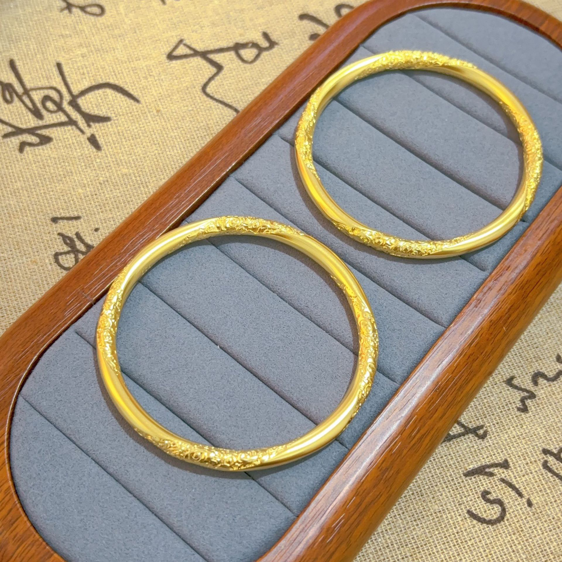 金店同款沙金古法祥云纹纳福传承手镯女斜卷草纹手环新中式礼物