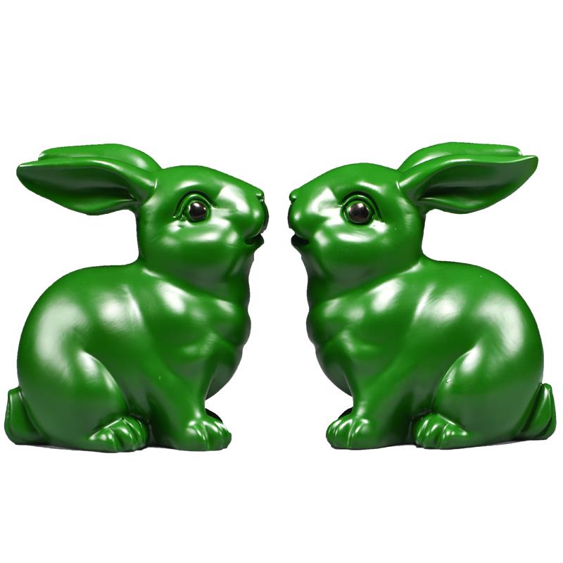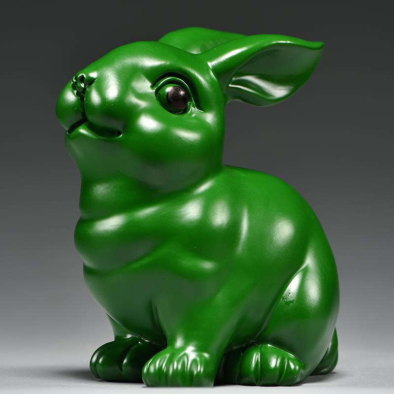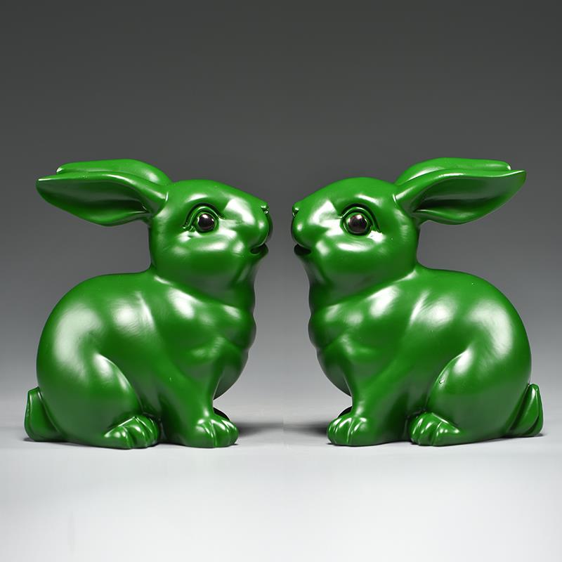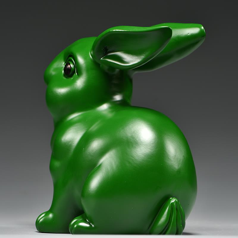 绿色实木雕刻兔子摆件木质十二生肖木头小兔吉祥物装饰木制工艺礼