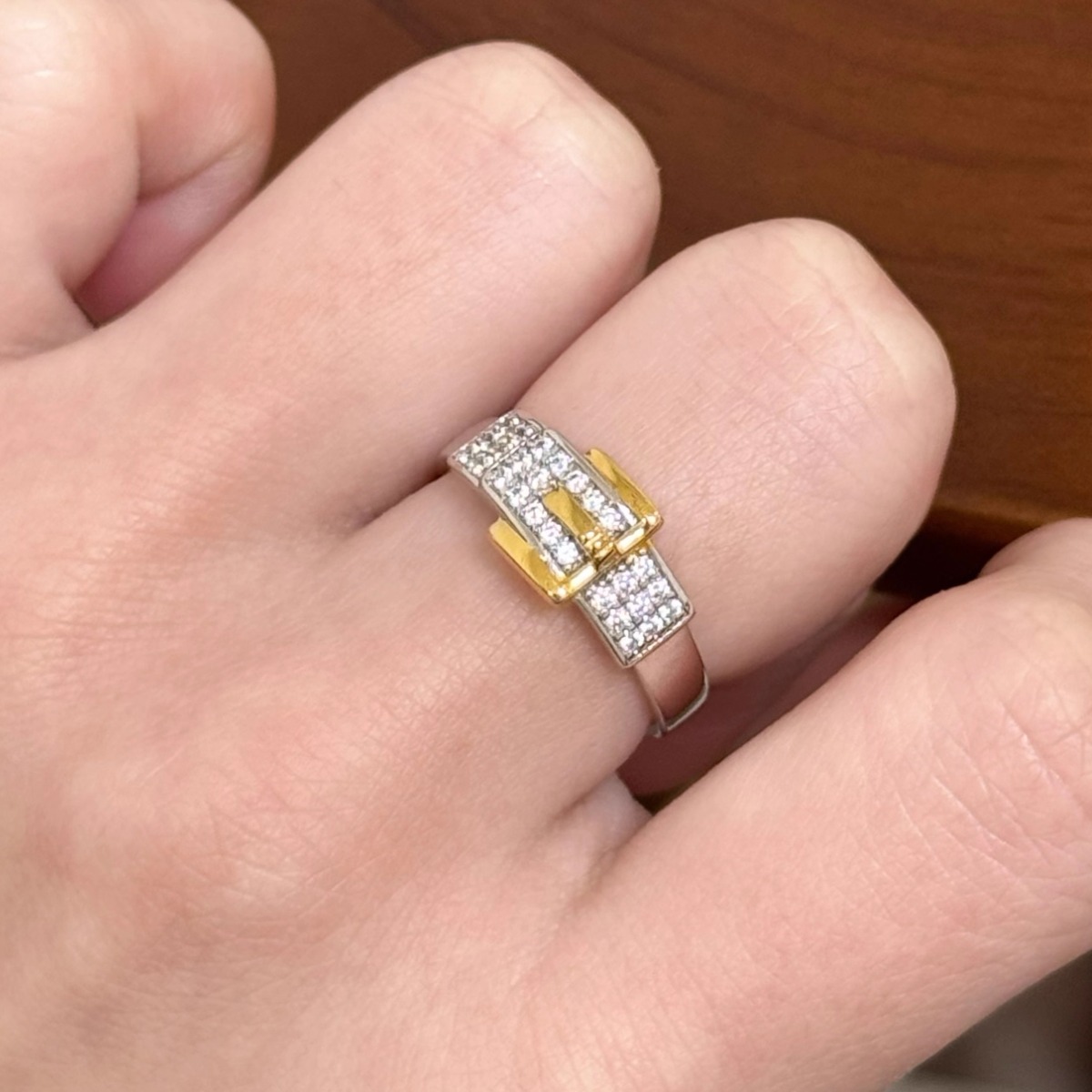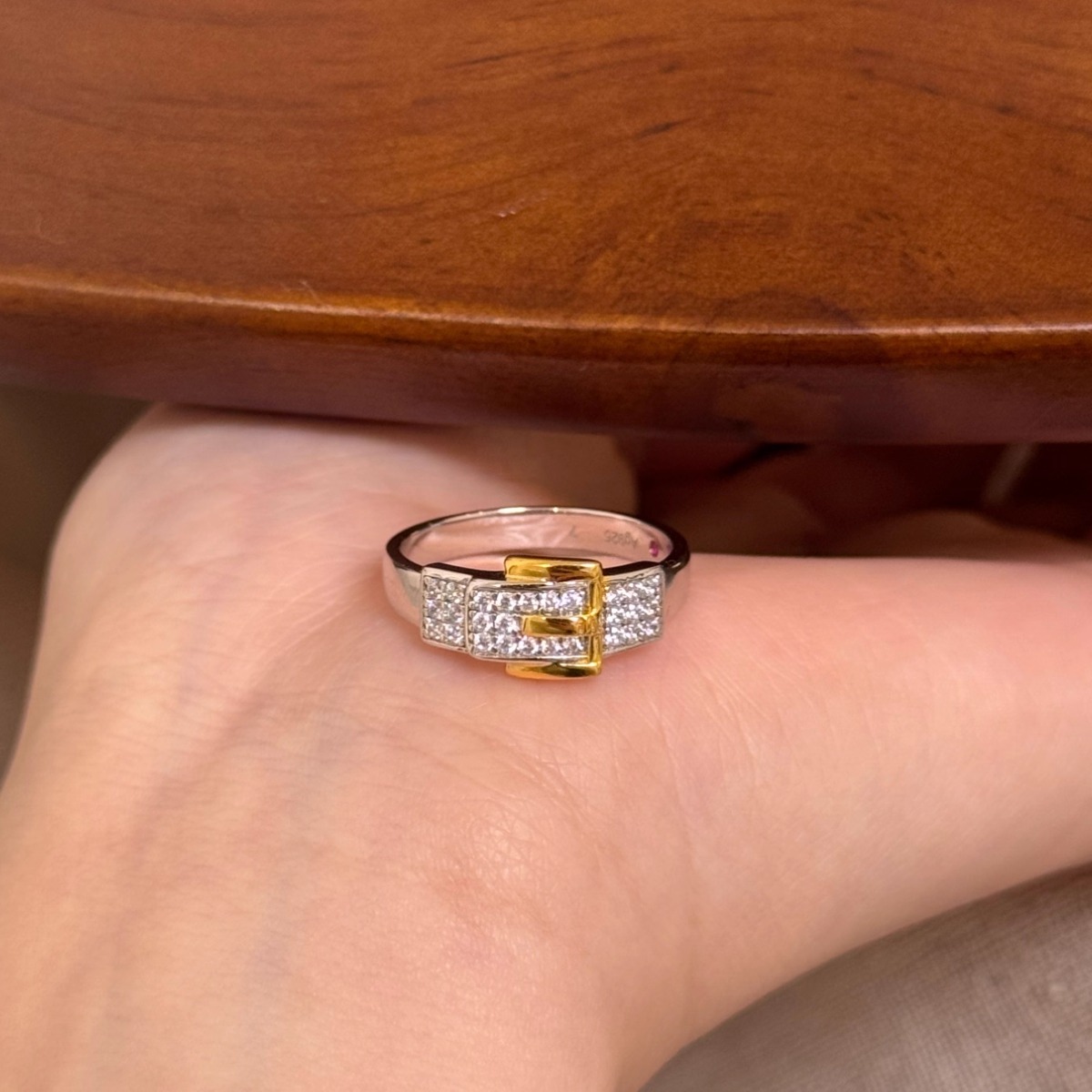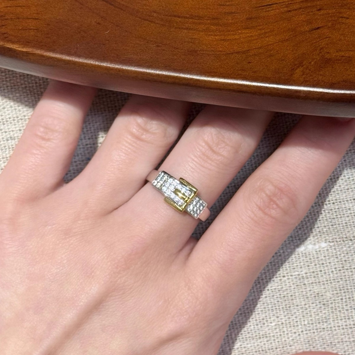 小众设计腰带宽面镶钻戒指女轻奢指环银色