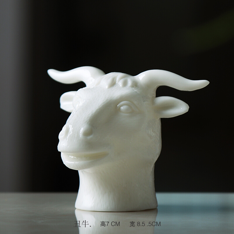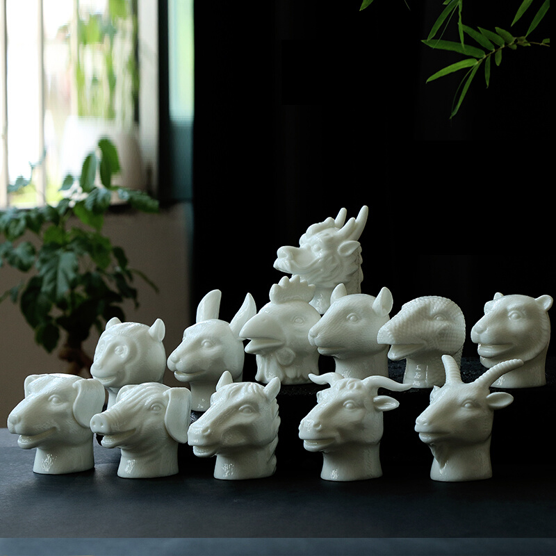 家居饰品创意小摆件十二生肖个性兽首手工白瓷工艺品客厅玄关装饰