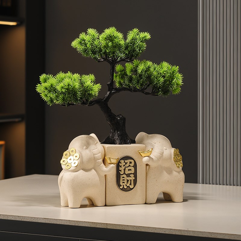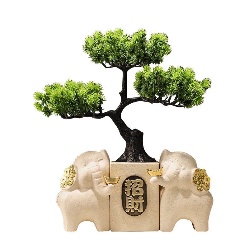 大象摆件迎客松客厅电视柜装饰品入户玄关乔迁新V居礼品开业礼物