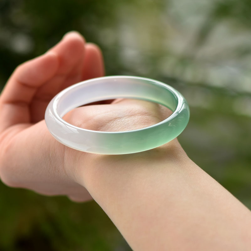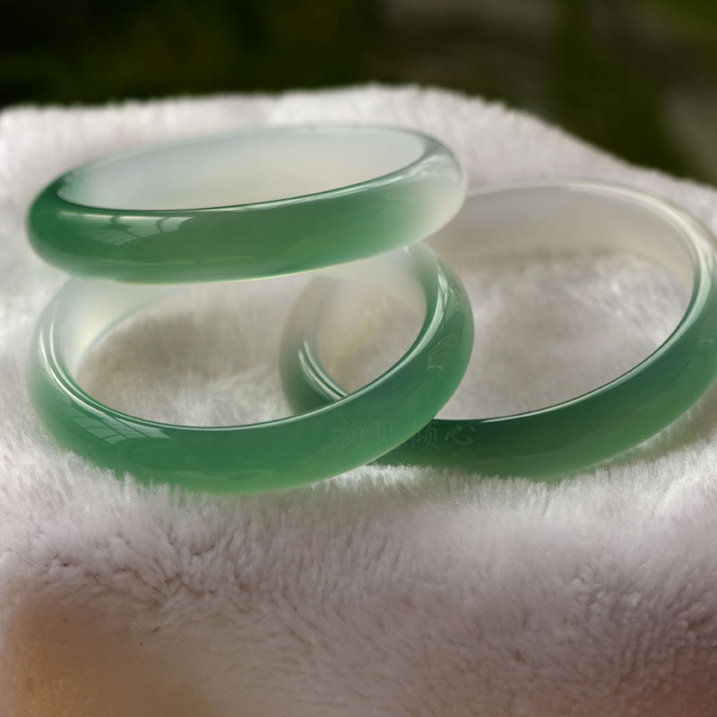 天然半釉青冰透玉髓手镯女款 半山半水半油青半绿玛瑙镯子玉镯