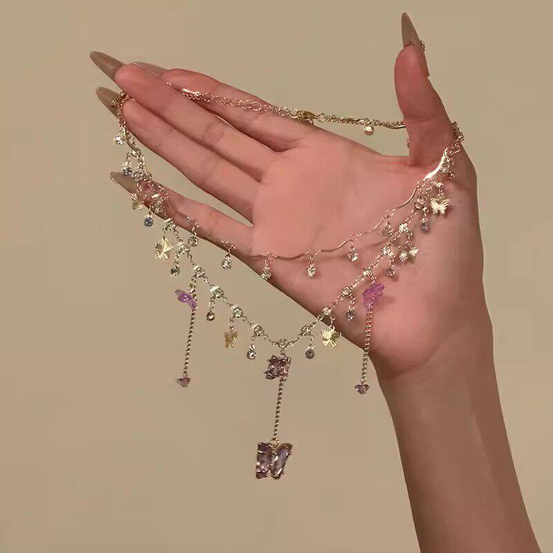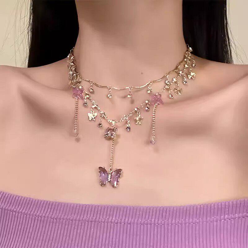 【晶紫璀璨】夏季紫色水晶蝴蝶项链高级感choker锁骨链仙女风项饰