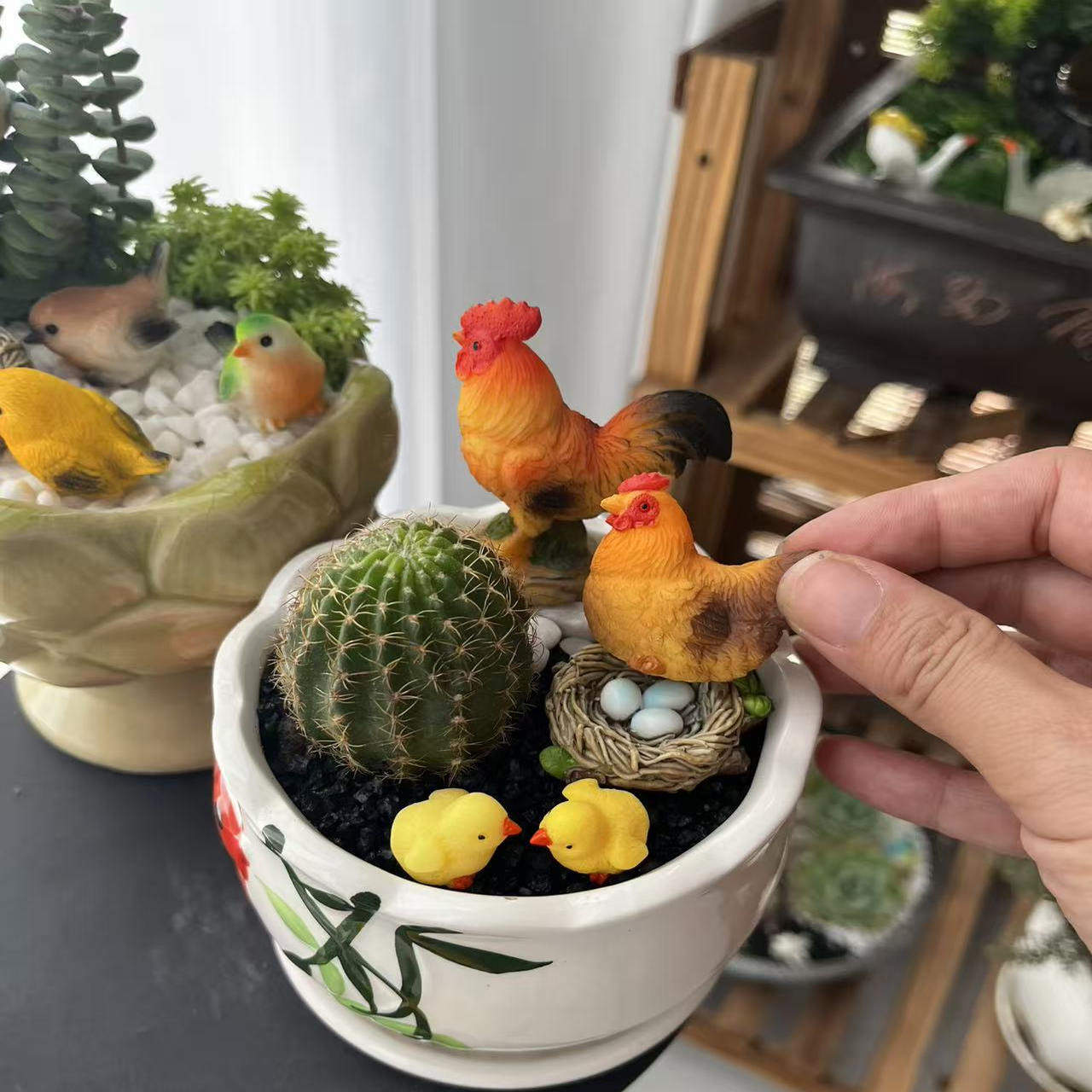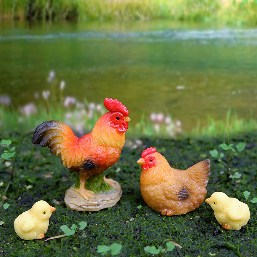 跨境公鸡母鸡 苔藓微景观小鸡工艺品摆件 造景卡通 迷你多肉配饰