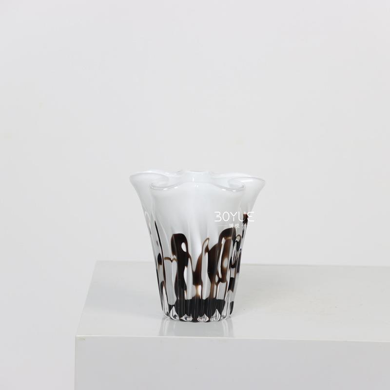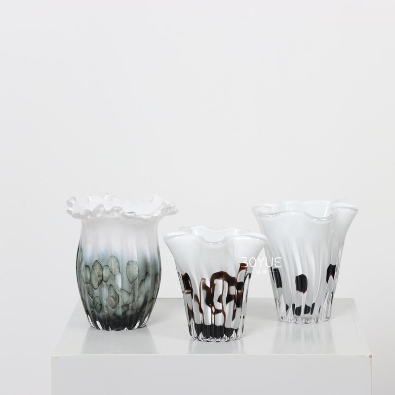 现代OZO简约意花间纹创花瓣口琉璃花摆件样板客厅餐桌样板房装瓶