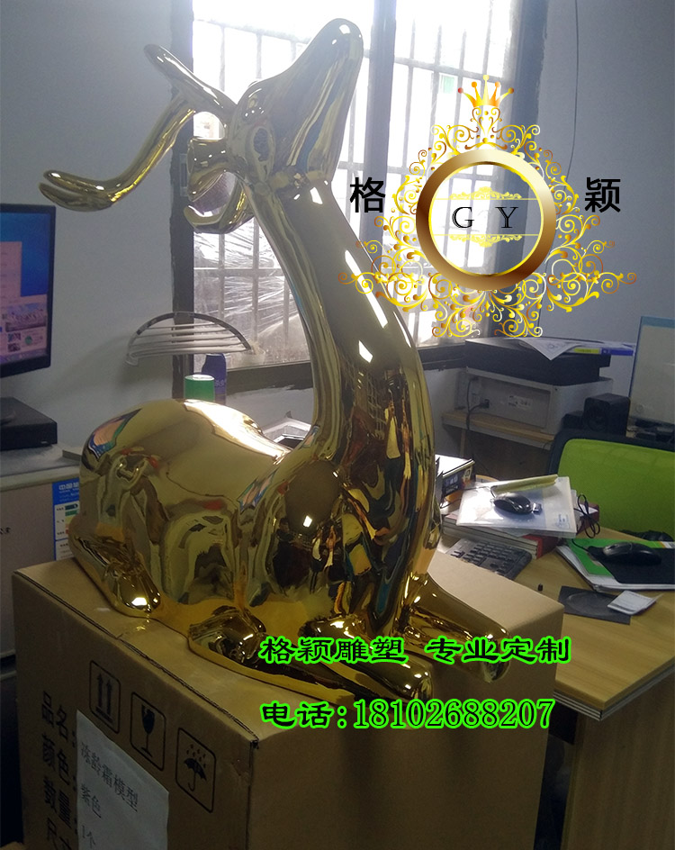 电镀麋鹿仿真鹿树脂玻璃钢电镀金色抽象鹿装饰工艺品酒店客厅家居