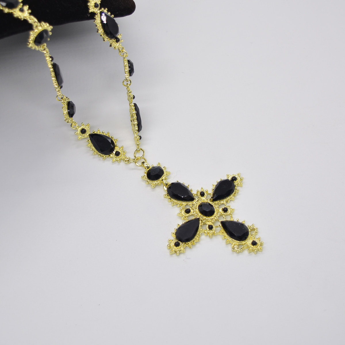 复古巴洛克中世纪古董风情项链十字架黑色宝石毛衣链女夸张气质潮