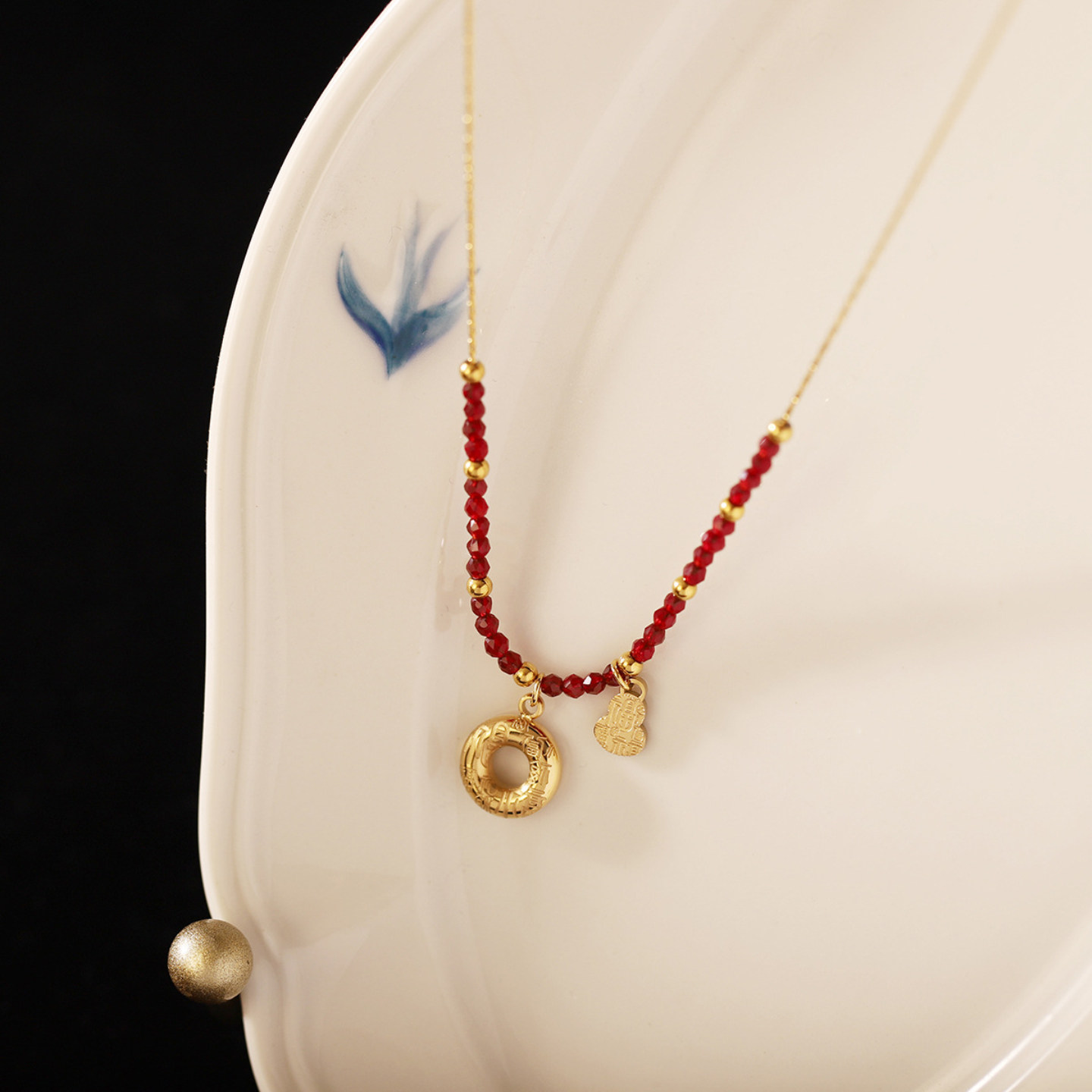 新年款2026福字喜庆红色中国风串珠葫芦项链锁骨链钛钢镀金