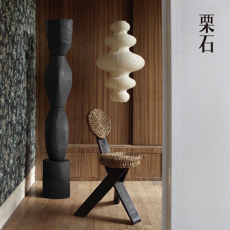 栗石侘寂风碳化木几何艺术装置客厅玄关黑色木雕塑装饰落地大摆件