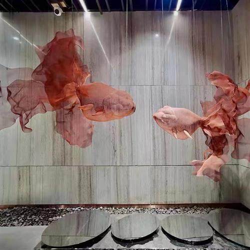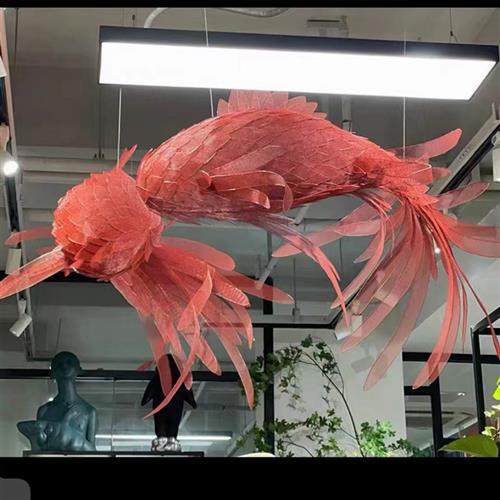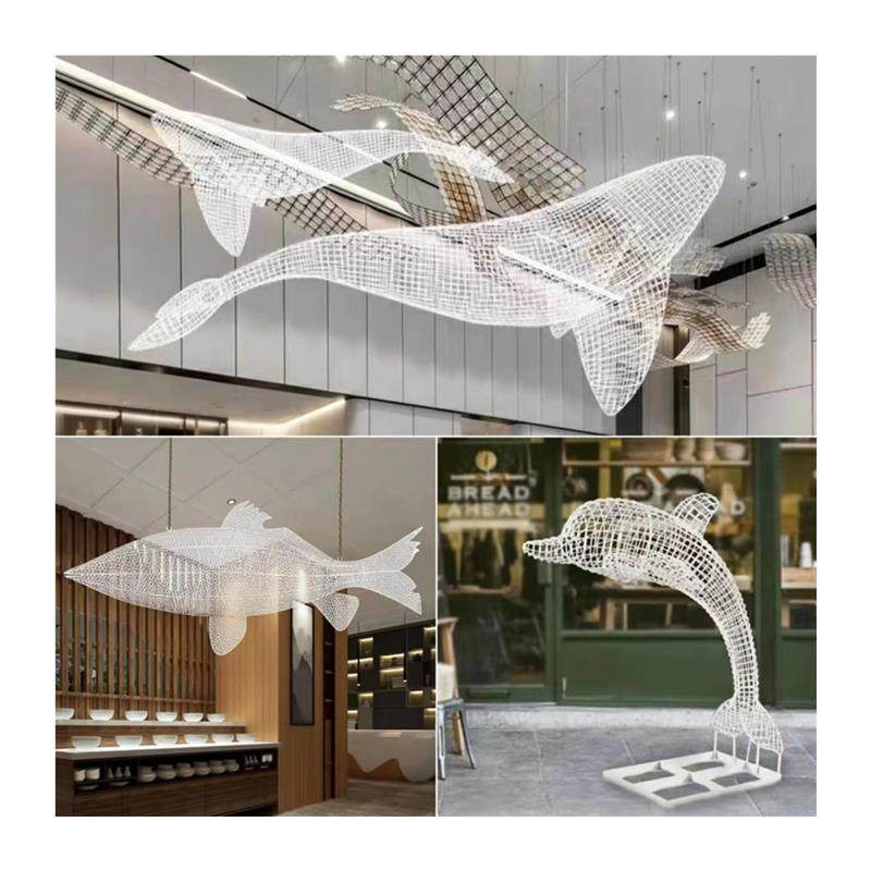 定制镂空鲸鱼雕塑售楼处商场展厅酒店不锈钢铁艺网格金鱼悬吊装饰