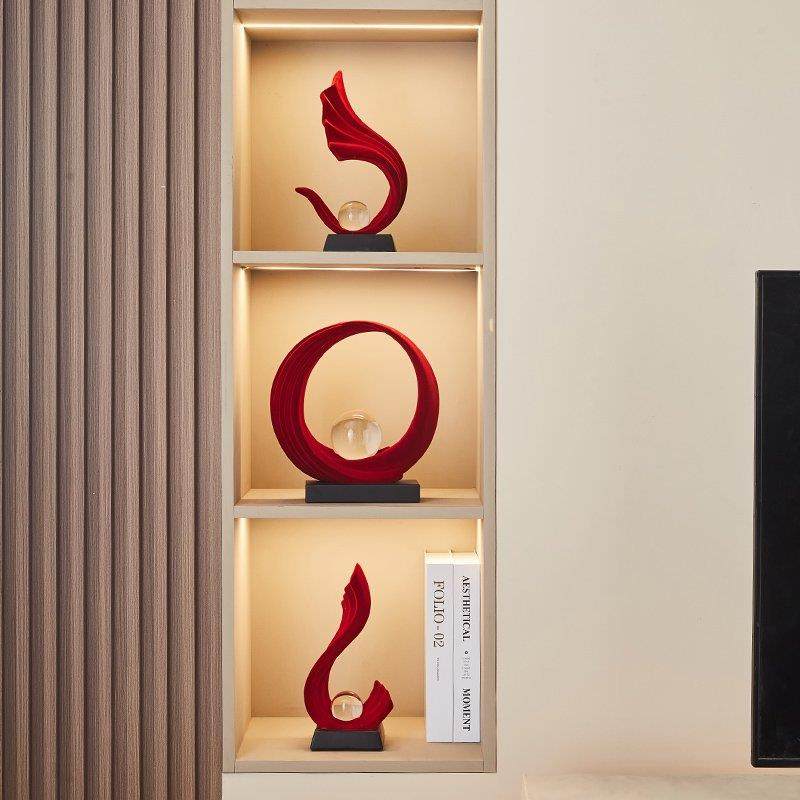 红色高级感客厅玄关酒柜子电视柜装饰摆件轻奢高档工艺品高端大气