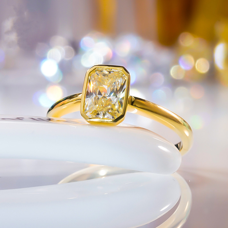 18K金进口莫桑石公主方黄钻戒指女新款小方糖指环求订婚礼物轻奢