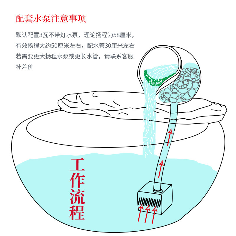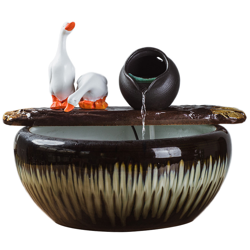 优选简易鱼缸陶瓷罐循环流水加氧过滤器中式复古阳台石槽造景装饰