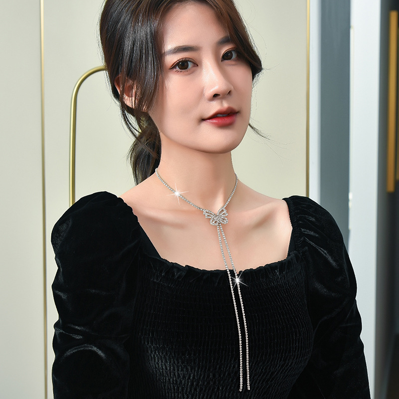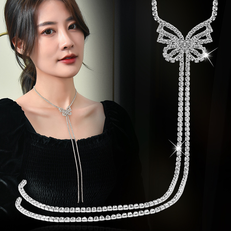 欧美女亮钻锁骨蝴蝶长链项链 时尚百搭气质毛衣链
