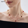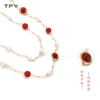 红玛瑙珍珠项链女长款双层叠戴锁骨链2025新款爆款红色毛衣链配饰