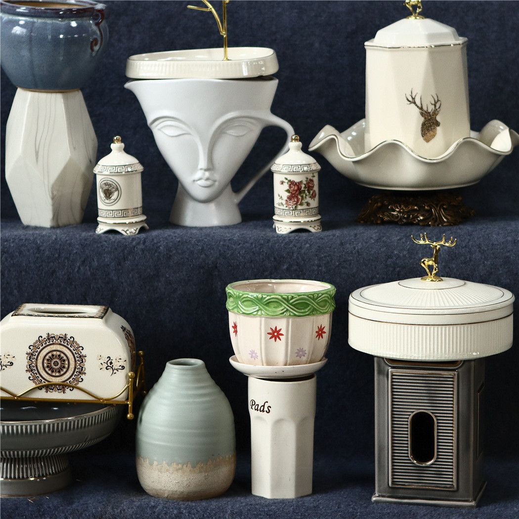 孤品大集合-欧式复古家居饰品仿古陶瓷装饰创意摆件花盆花瓶托盘
