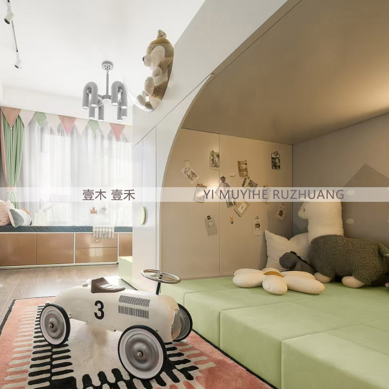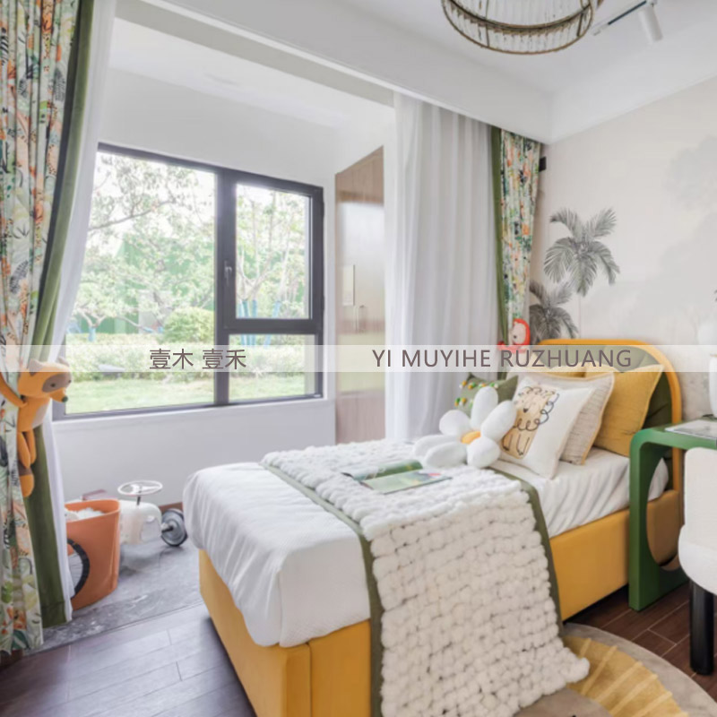 现代绿色系样板间儿童房女孩房创意毛绒玩具可爱软装饰品搭配摆件