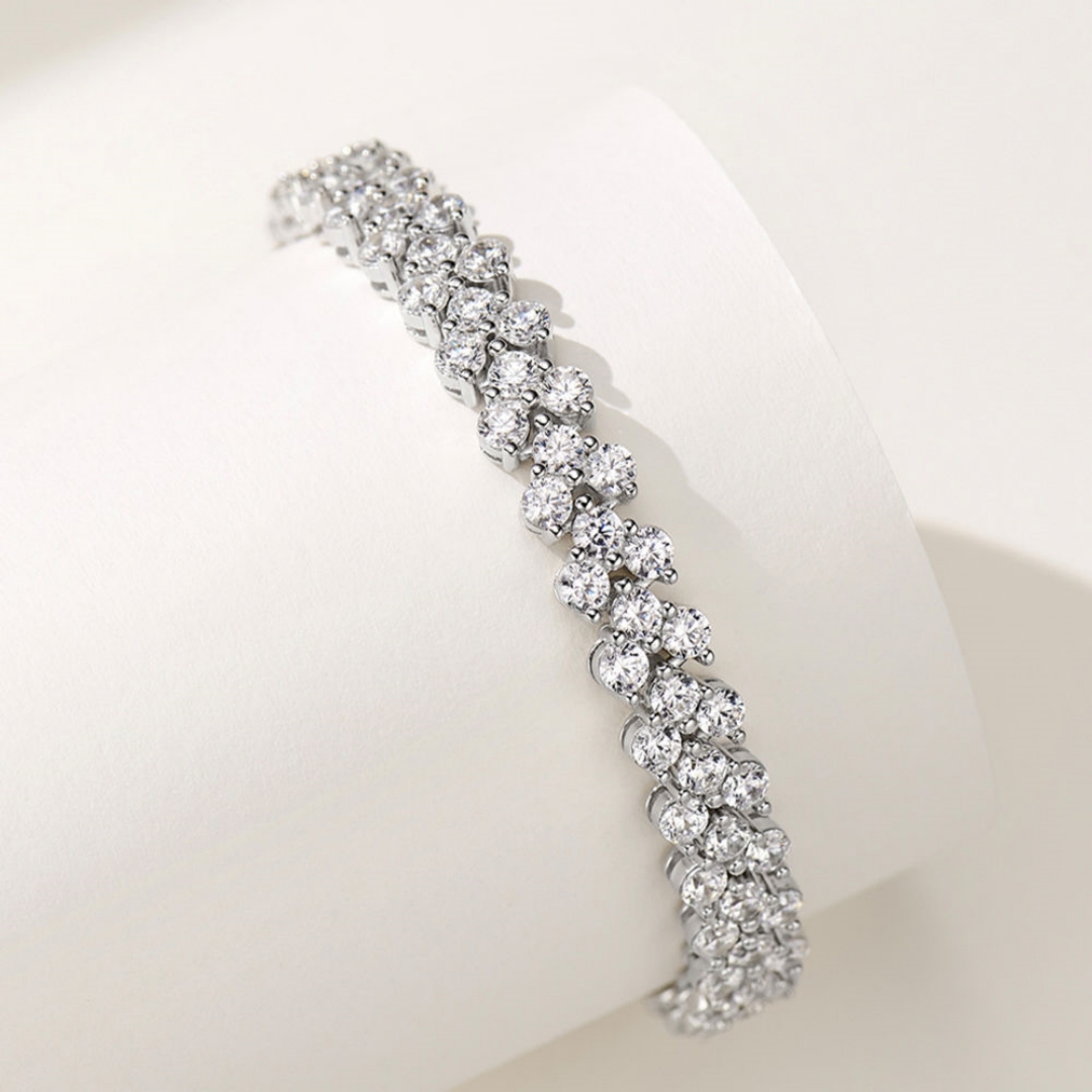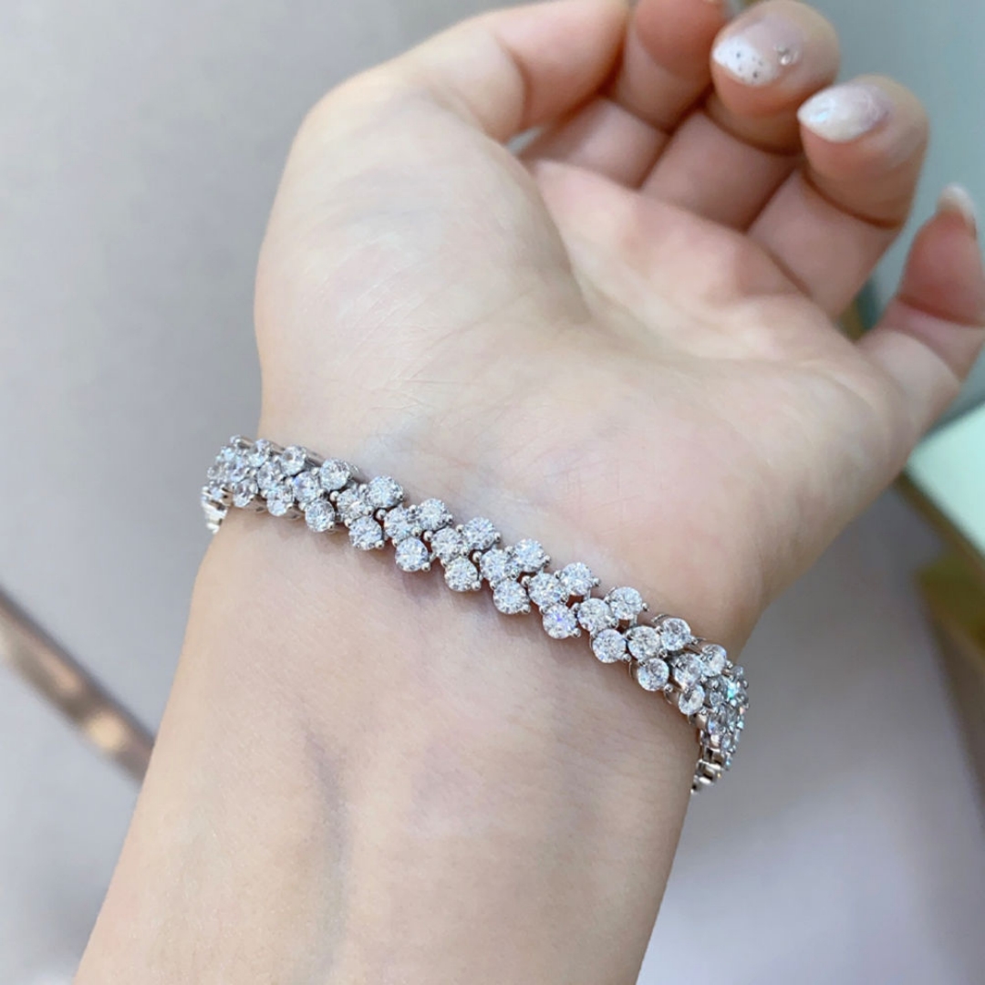 梓瑜同款爆闪点点钻爱心造型锦簇满钻麦穗手链女925纯银镀18K白金