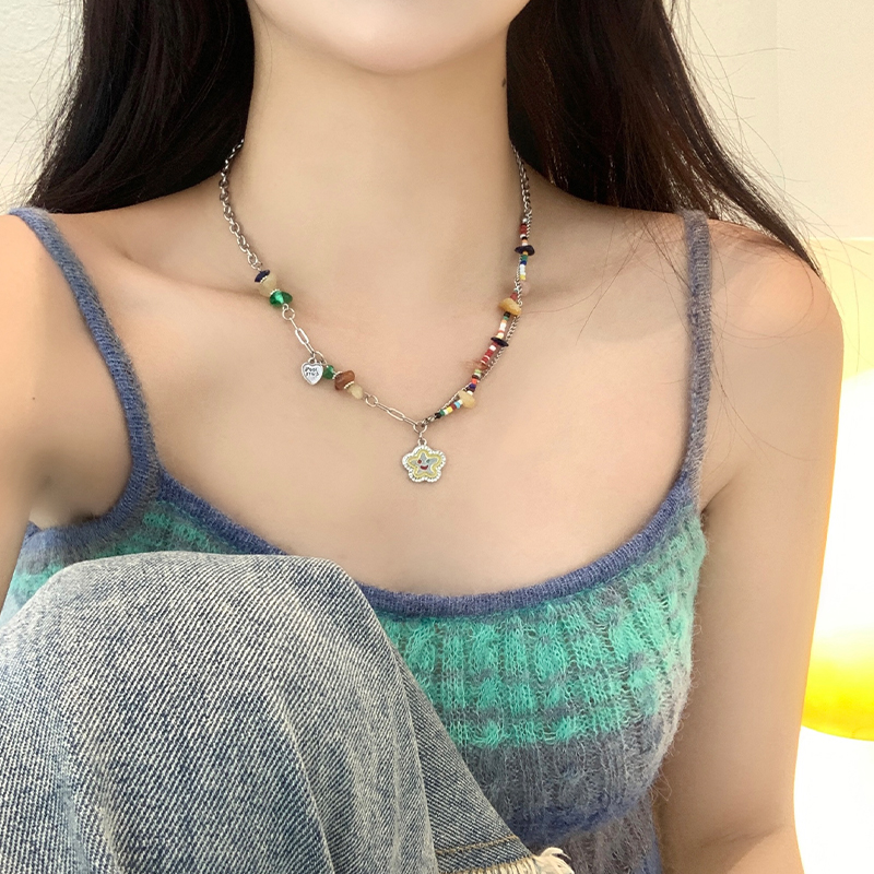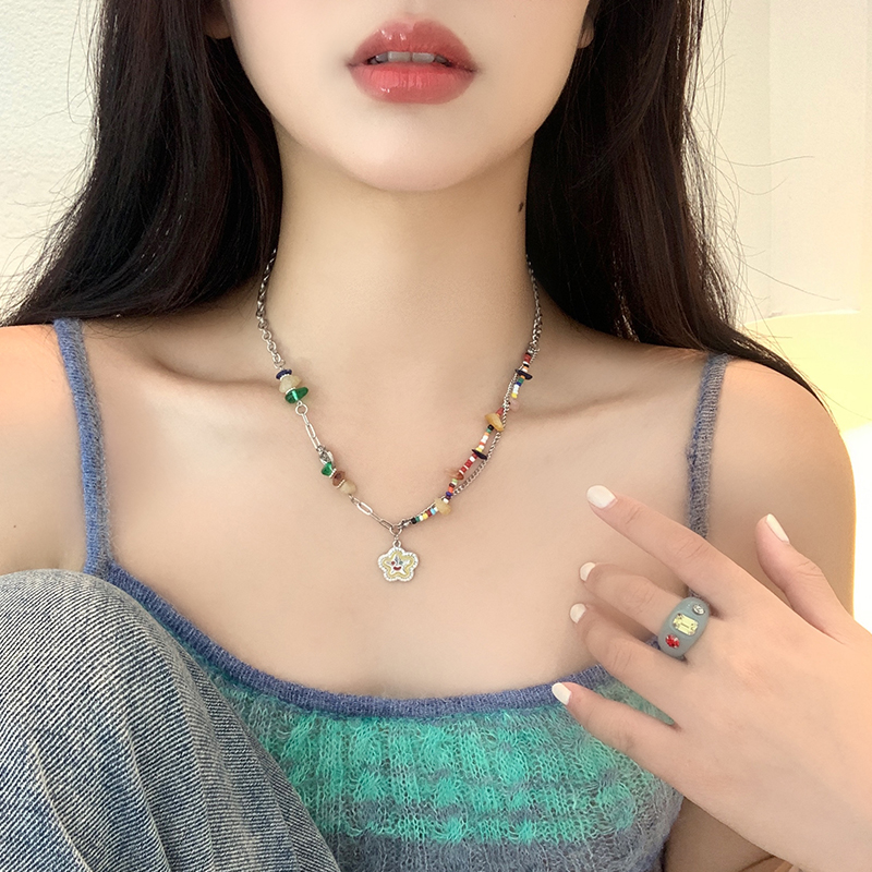 彩色碎石笑脸串珠项链女夏ins小众设计轻奢高级感锁骨链甜酷饰品