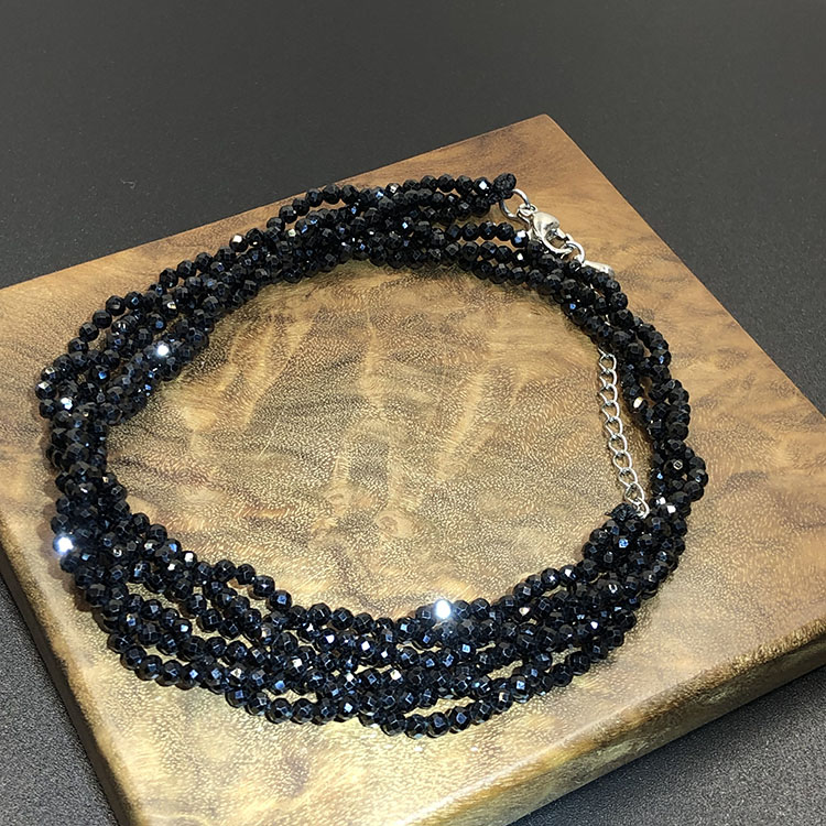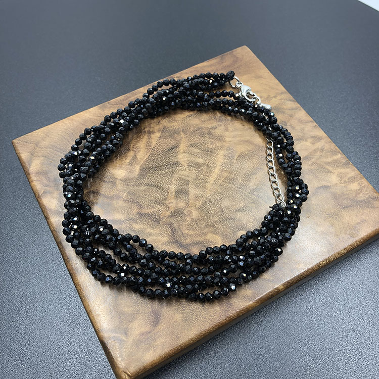 2025新天然黑尖晶设计款锁骨链项链网红chocker项圈短款可当手链